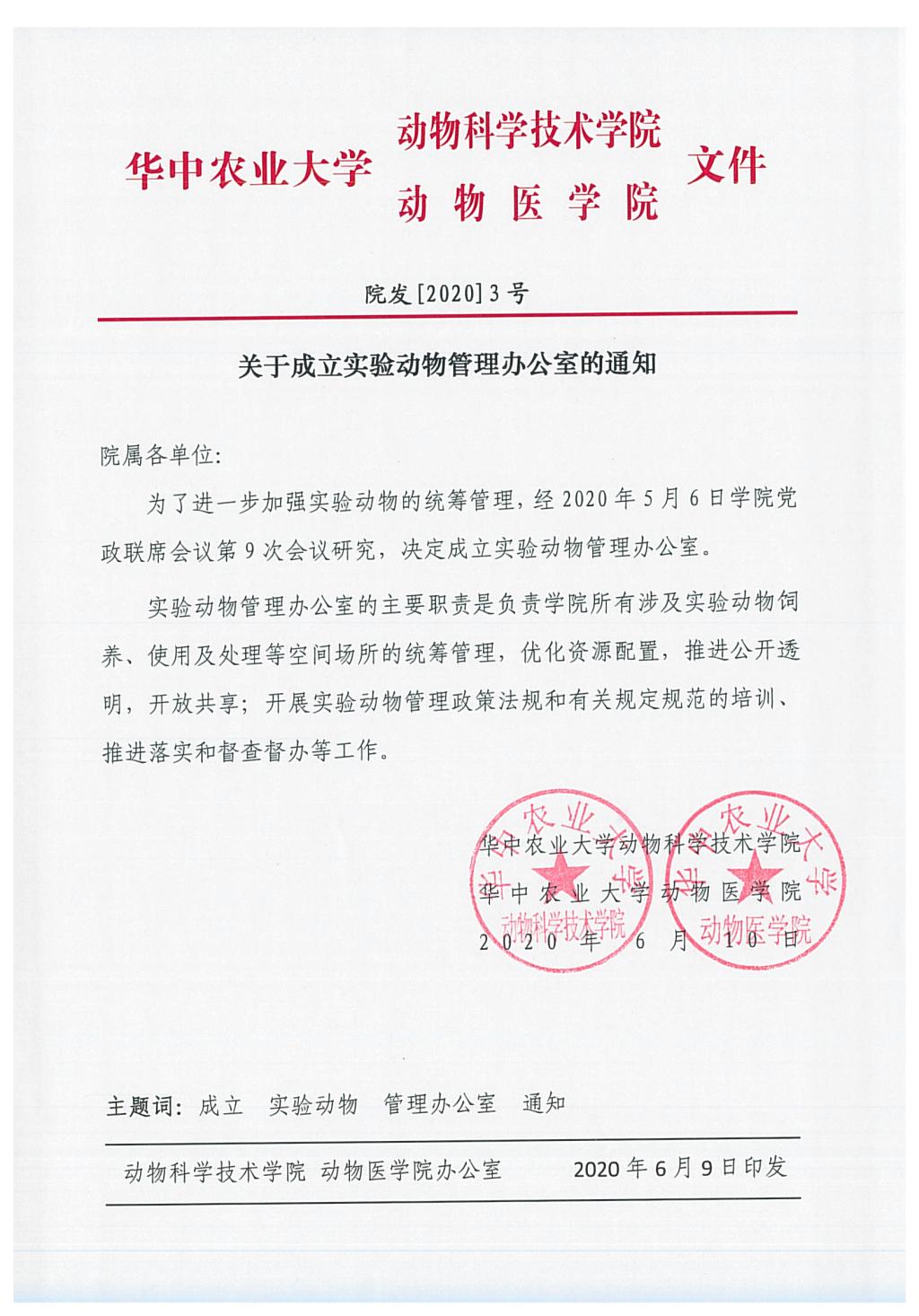 关于成立实验动物管理办公室的通知