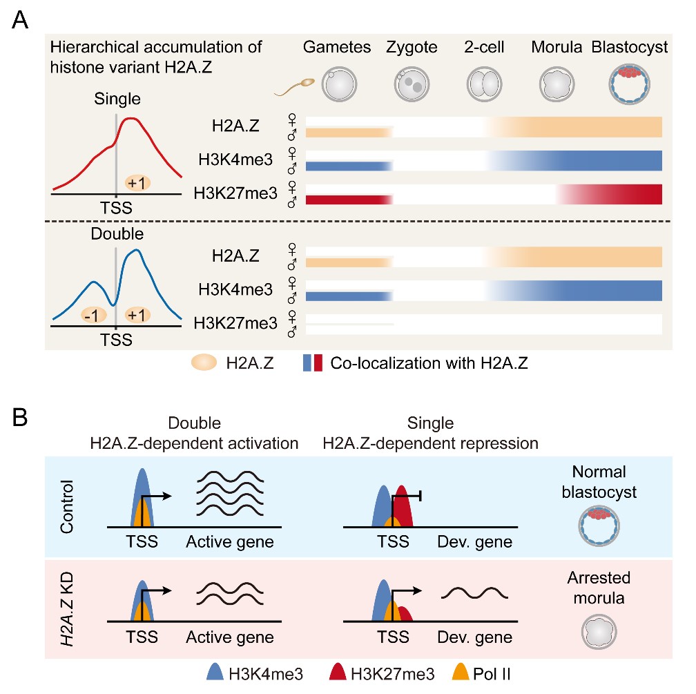 图:H2A.Z在早期胚胎中的分层富集和功能研究