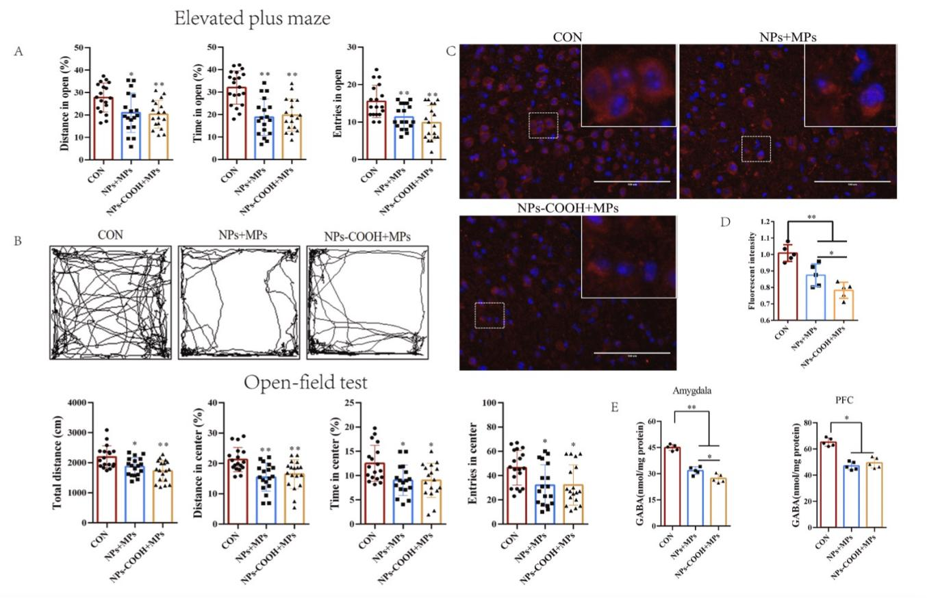 图2.塑料降解颗粒引起成年子代焦虑样行为