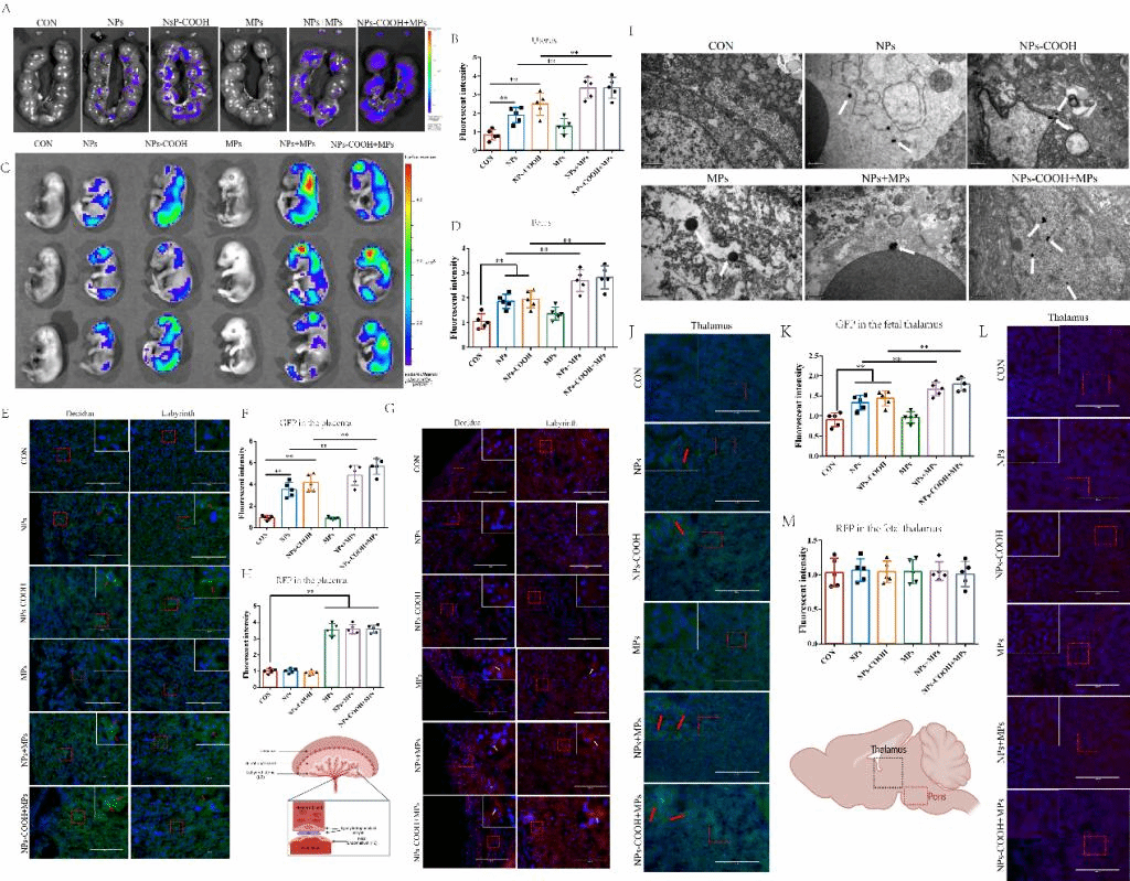 图1摄入的塑料降解颗粒在鼠胎盘和胎脑中的分布