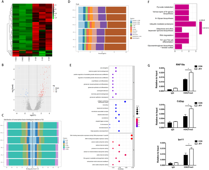 图2.ChIP-Sequencing分析JEV感染细胞中H3K27me3参与调控的基因