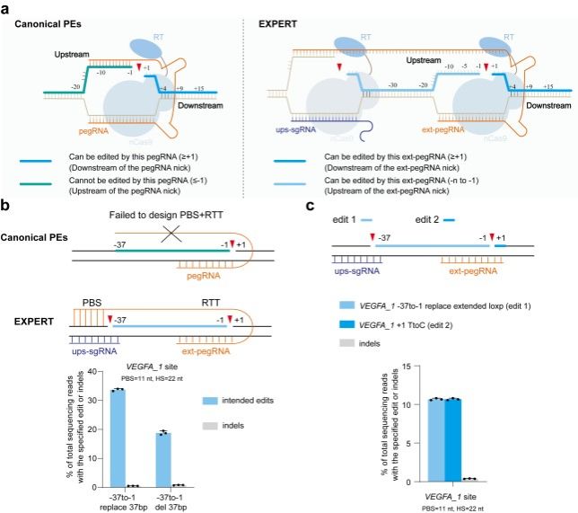 (通讯员 阮进学 熊友才)近日,公司动物遗传育种团队研究成果以“EXPERT expands prime editing efficiency and range of large fragment edits”为题在Nature Communications发表。研究开发了新型基因编辑工具EXPERT,创新性地在pegRNA nick所在DNA链上游引入额外切口,并对pegRNA末端进行优化改造,同时引入突变以抑制游离片段对新链合成的干扰,大幅度拓宽了PE编辑范围,在多个物种中实现了大片段精准高效编辑,为生物育种、人类疾病治疗等领域提供了新技术和工具。