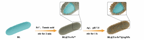 图 1 BL@TA-FeIII@AgNPs结构模式图