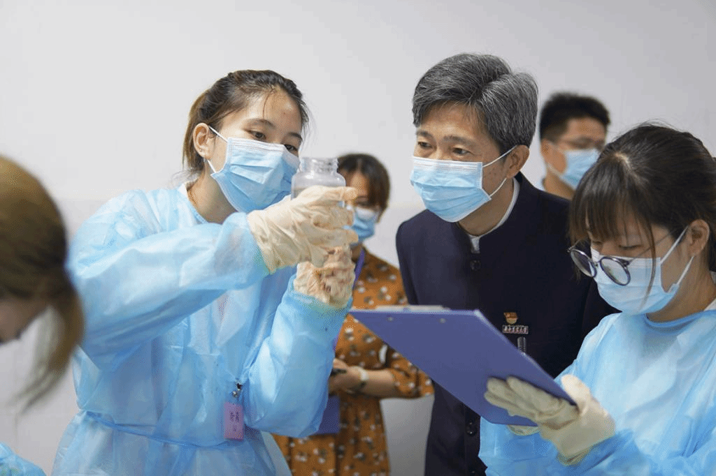 选手们对患病动物进行病原菌检查