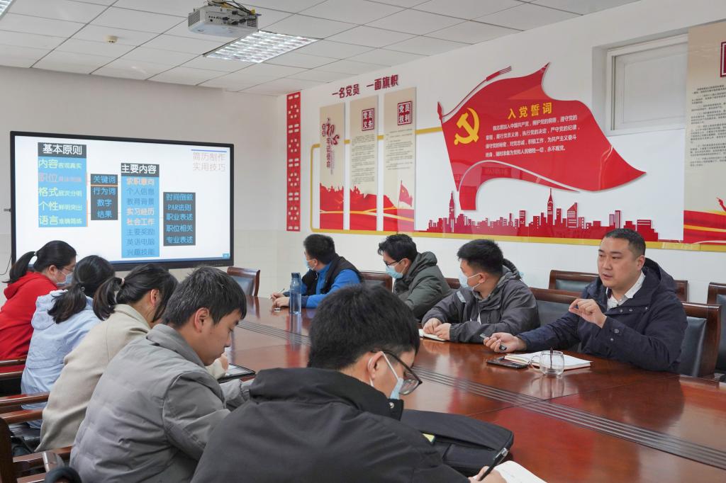 程唐煜重点向在场同学讲述调剂过程中的注意事项。他结合往届部分员工无法及时获取复试和调剂消息的案例,向与会成员介绍了两种有效获取信息的途径:公司、省组织部官网和所加入的联系群聊。最后,王运涛对毕业年级表达美好祝愿:“希望每一位同学都能找准人生定位,实现人生理想。”