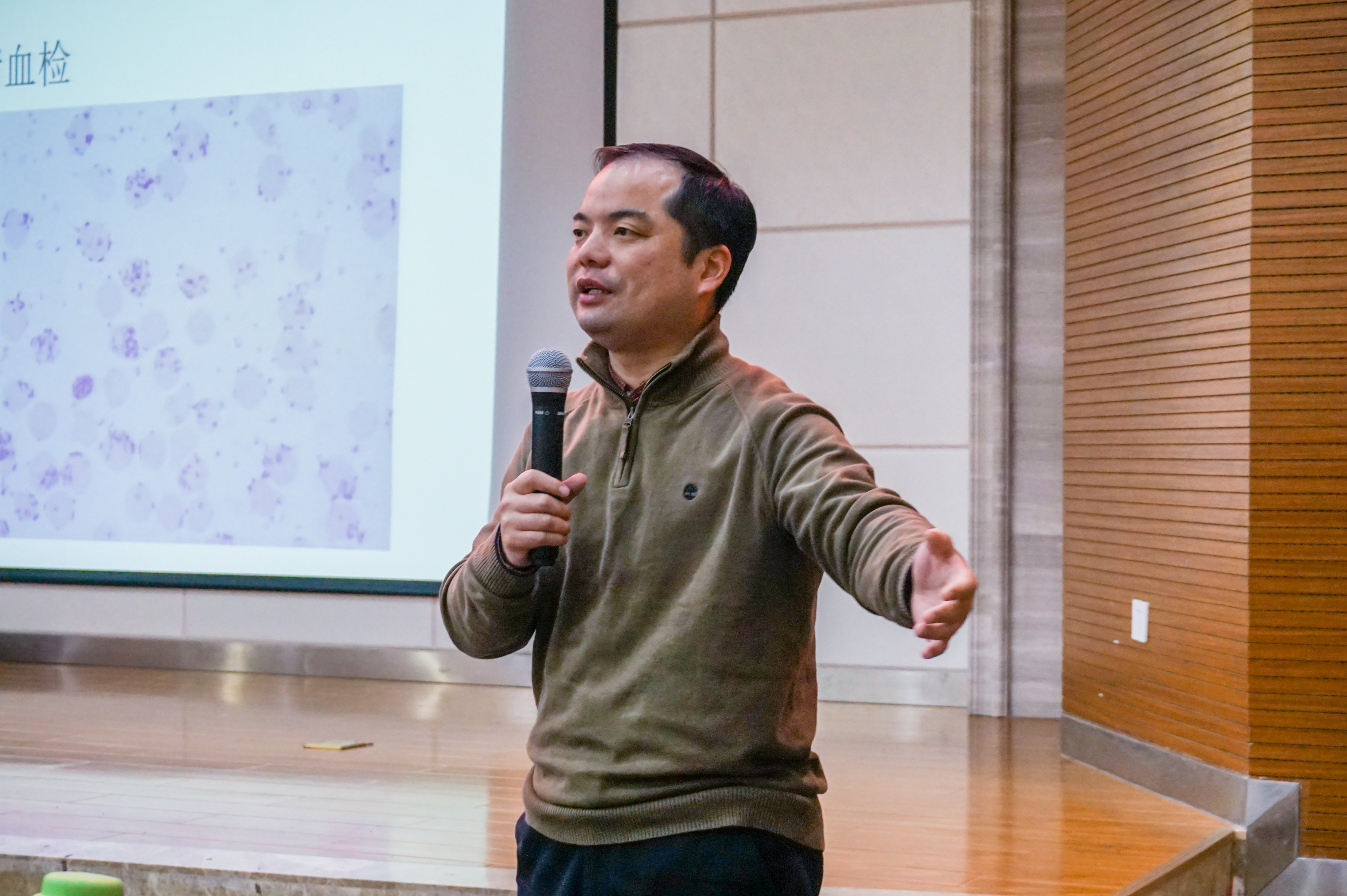 丁一针对中美合作职业兽医项目简介、国外DVM与国内兽医的比较两大方面进行宣讲。他表示DVM项目早在清朝时就为我国培养多位畜牧兽医专业人才,这也为我国兽医事业的早期发展打下坚实基础。当谈到中美兽医教育比较的时候丁一从学位制度、知识结构差异、临床实践、学习疾病的诊断过程四个方面并结合具体的案例展开论述。他表示国外临床研究的问题大多来源于临床实践,这是和我国很不一样的地方;此外他还指出,国内疾病诊断教学虽详细全面,但其从“疾病到症状”的教学方式却与临床“症状到疾病”的实际略有不符。在提问环节中,在座员工们针对自己不懂的问题踊跃发问,沈丁二人积极回答。