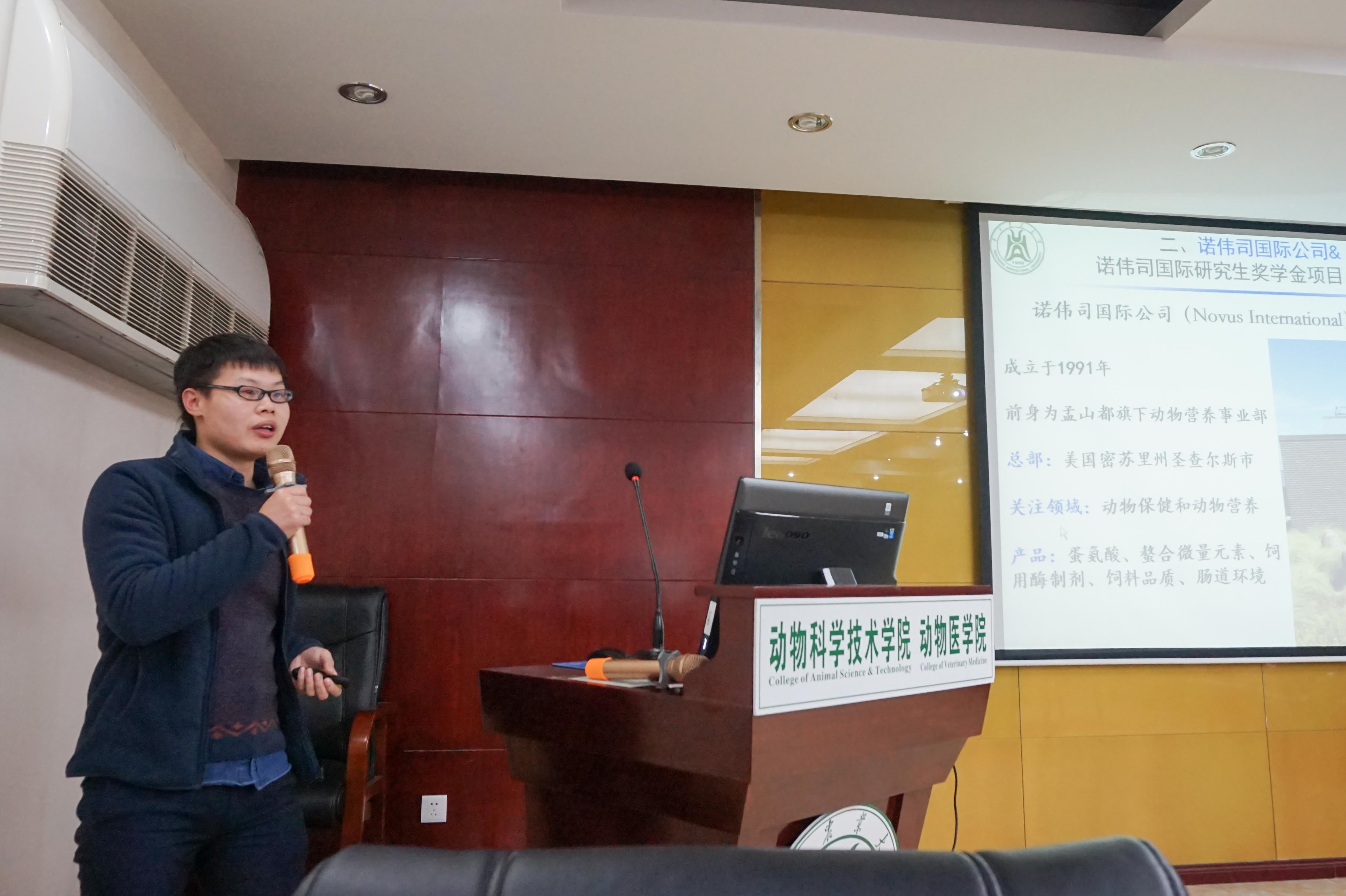 李秀领则对于出国留学的现状给大家带来了满满的干货。他首先简短地介绍了自己的留学地点:阿尔伯塔大学。接下来,他针对出国的必要性、如何选择留学的大学、以及对国外学习生活的建议三个方面进行了经验的分享与探讨。呼吁更多学子潜心学习为我国畜牧兽医的发展做出贡献。