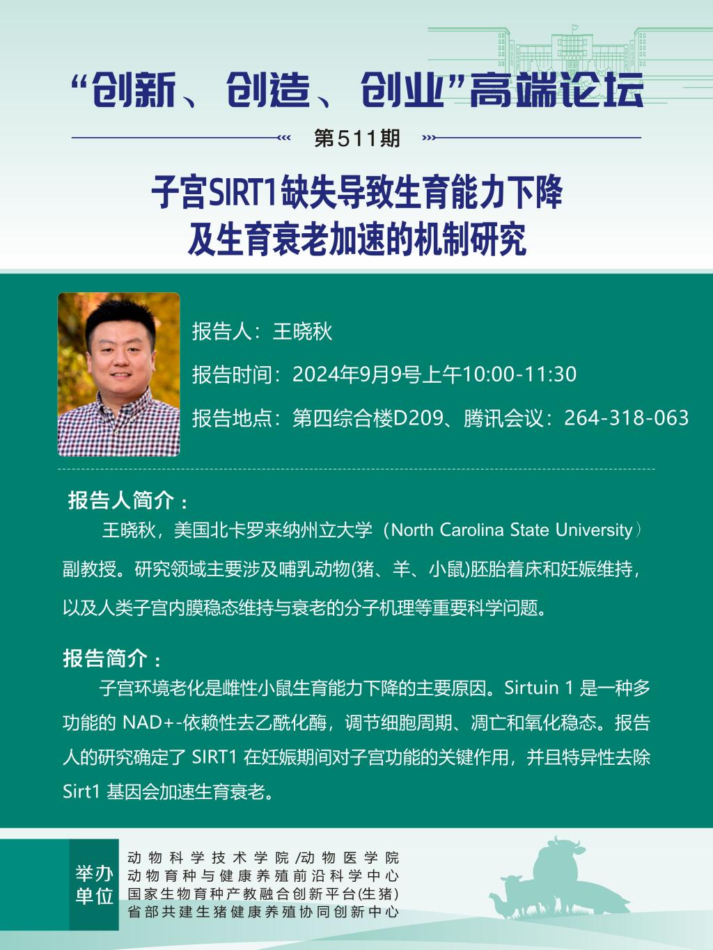 子宫SIRT1缺失导致生育能力下降及生育衰老加速的机制研究