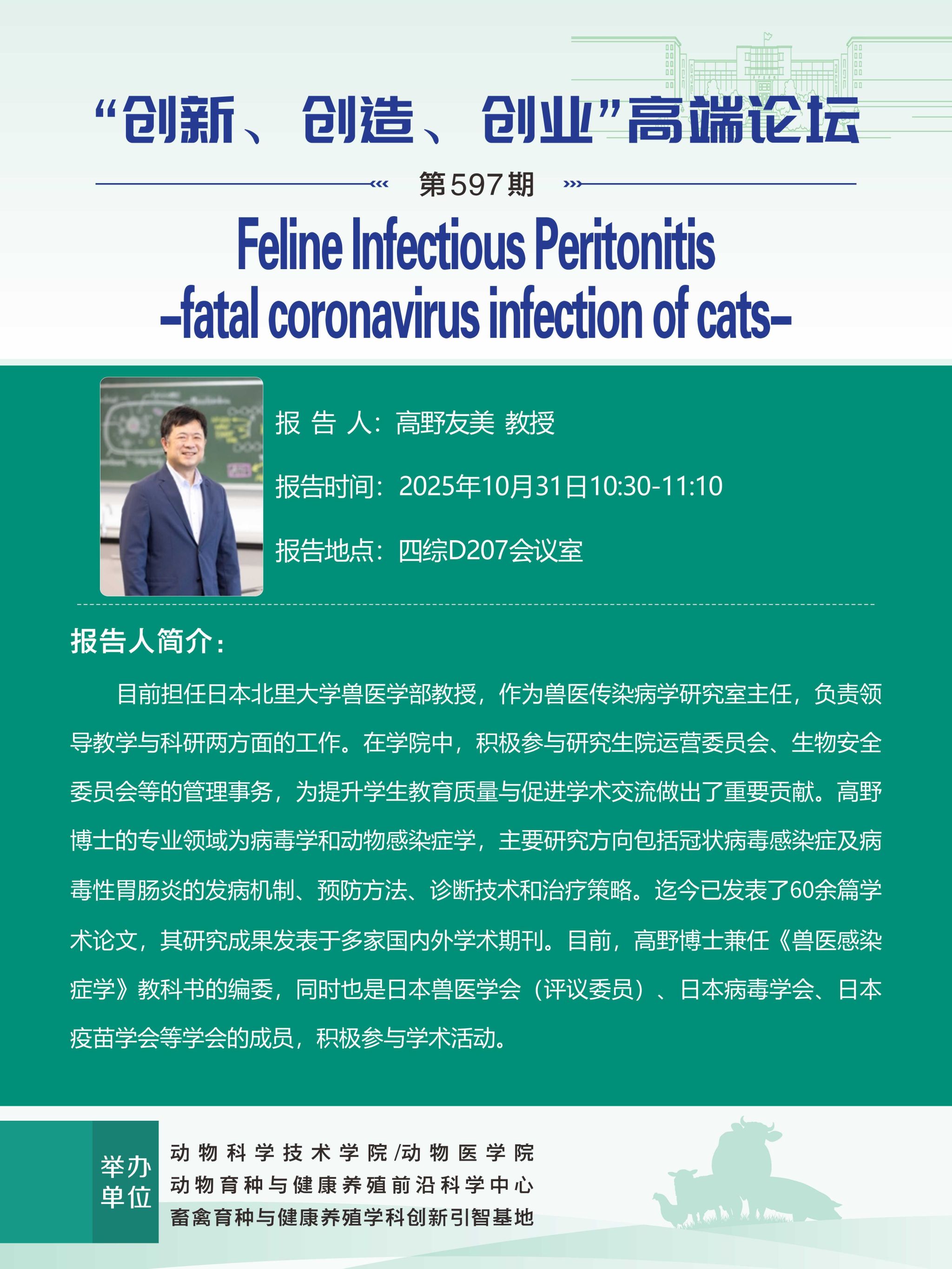 Feline Infectious Peritonitis fatal coronavirus infection of cats