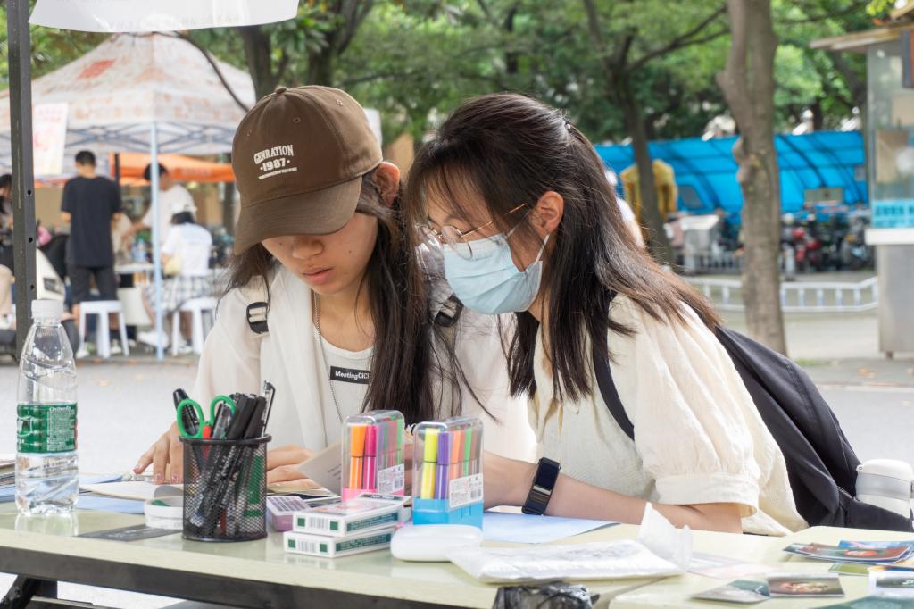 “这次举办的活动我觉得十分有意义,我感受到了他们的热情与陪伴,让本来因为考试临近而紧张焦虑的心情得到了缓解。”动医2005班的杜知航开心地说道。本次活动内容包括:“知我——做自己生活的诗意人”、“信我——相信自己的每一个选择”、“诉我——表达出自己的真实想法”和“本我——回归到自我的存在之中”。现场同学可以自行发挥创作,根据工作人员提供的歌词或者文字素材进行裁剪拼贴,组成一句诗词或者话语,来表达自己内心的情感。参与者向工作人员展示自己的作品,“盒子里是彼此拥抱的快乐”“轻描淡写地出现在你我的生活”“通过海风,听见你的声音”,字字句句中充满着诗情画意和放飞的想象力。员工们也可以利用手机自带的NFC功能写入一首自己想要播放的歌曲,闭上眼睛,细细聆听,回归本我。音乐和诗句相互交融,浪漫自在的因子在空中弥散。