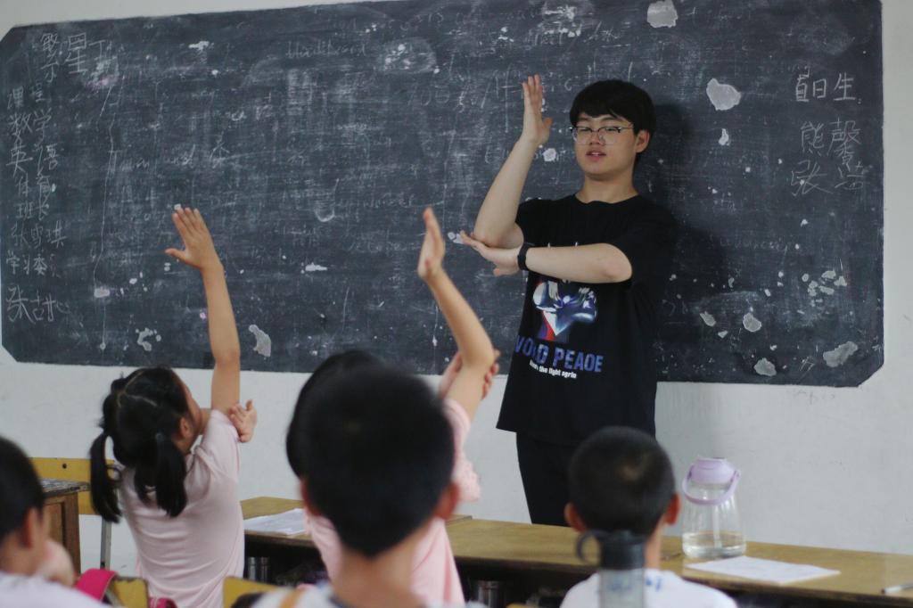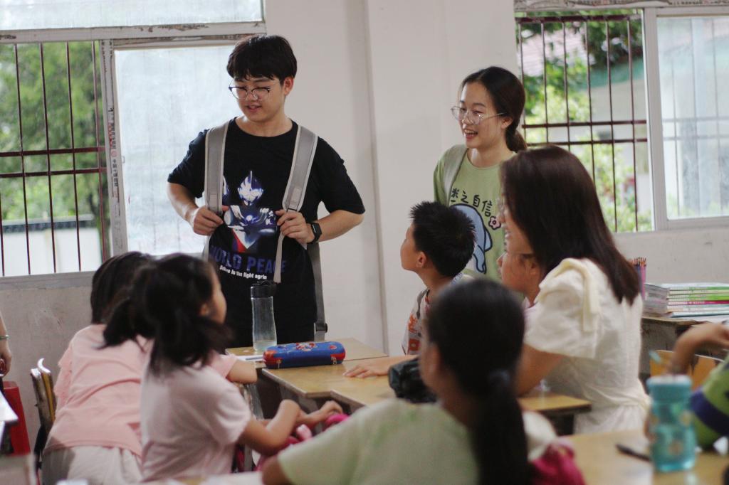 铃铃铃……下午的上课铃声响起。22届支教队员再次走上讲桌,时隔一年再次为员工们教授起了课程,并对员工们进行了细心周密的叮嘱。“虽然我们以后不能经常相见,甚至很难再见,老师希望你们一定要努力学习,认真做好功课,走出大山,看一看外面的世界。”罗世煜眼含热泪。孩子们听罢深受感动,在这“最后一课”中,他们积极举手、争先回答问题,以行动向老师证明自己渴求知识、积极进取的初心与态度。站在教室窗前,望着屋内认真听讲的孩子们,曾广萌的嘴角微微上扬。