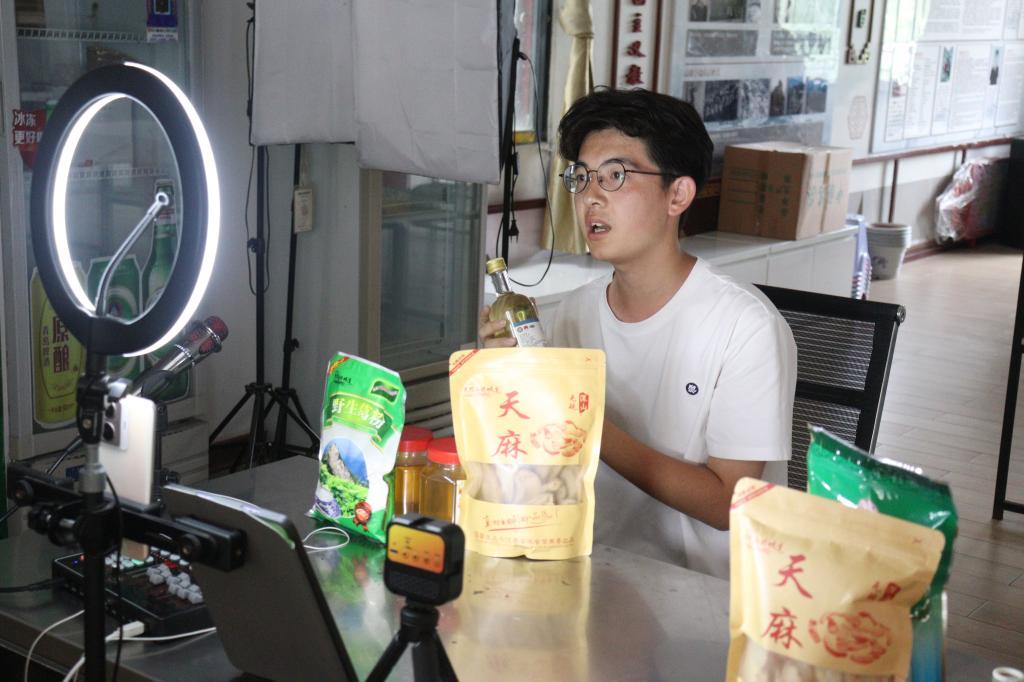 7月16日下午,经过了几小时的歇整,支教队员们在长岭关村村部开展了助农直播的活动。本次活动与“乡村振兴”的时代话题紧密联系,支教队员们结合当地的特色农产品,推出了老米酒、绿茶、深山天麻、蜂蜜、葛根粉五个产品。
