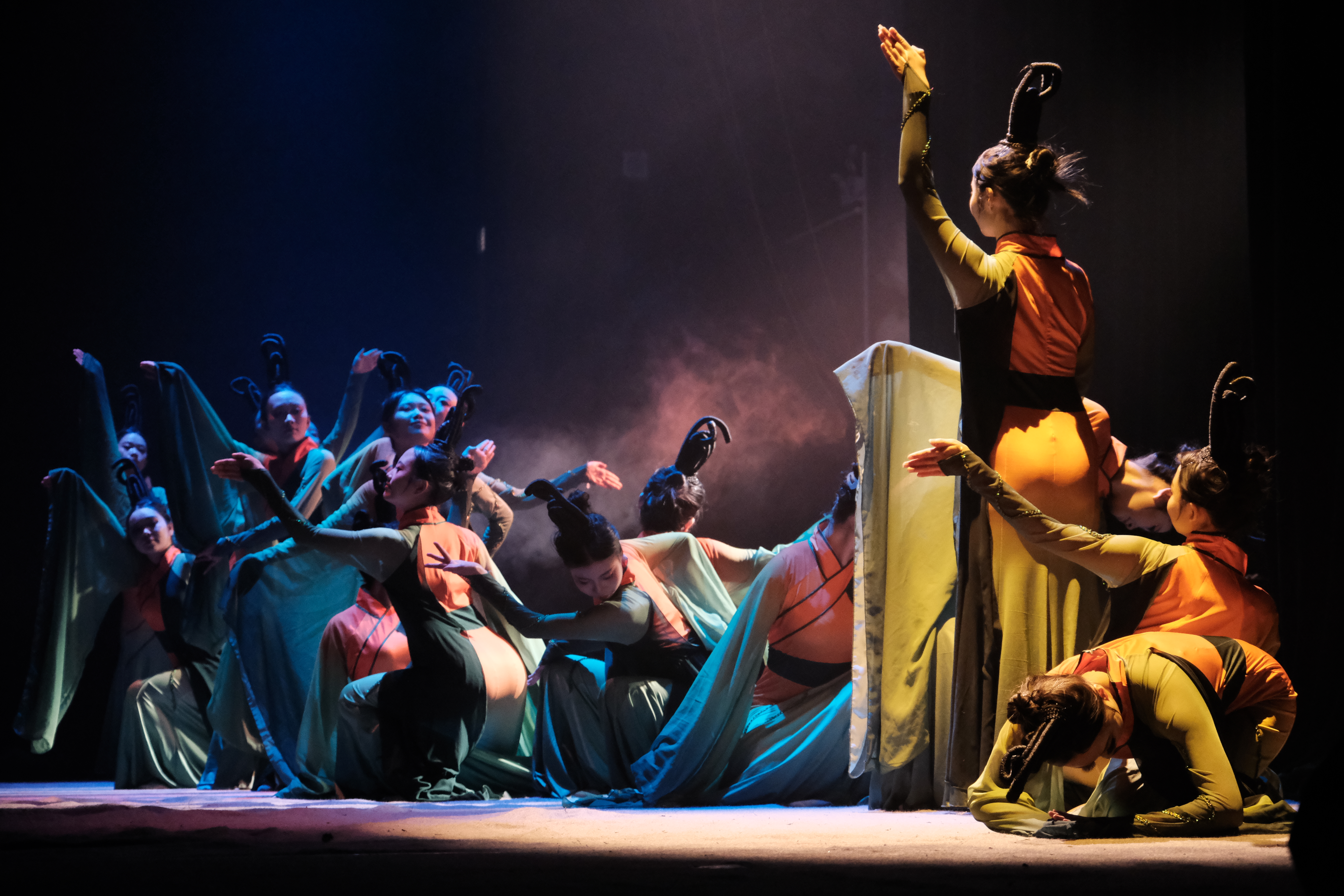13个公司各展风采后,bevictor伟德舞蹈团携一曲《橘颂》压轴登场。“后皇嘉树,橘徕服兮;受命不迁,生南国兮。”动科动医舞蹈团的同学们身着青黄渐变的舞蹈服饰,头盘发髻似果蒂。舞者们踏着相同的节奏韵律,跟随音乐塌腰撅臀、翘袖折腰,时而整齐划一,时而错落有致,动静结合,行云流水,完美展示了“楚腰”阿娜多姿的舞蹈形态。她们笑不露齿,用眼神传递内心情绪,通过翩翩舞步散发温婉含蓄、典雅端庄的气质。舞台光影流转,表演者的每一个动作和微笑都是对舞台的热爱和追求,都展现了动科动医学子为探求真理上下求索、矢志不渝的精神品格。