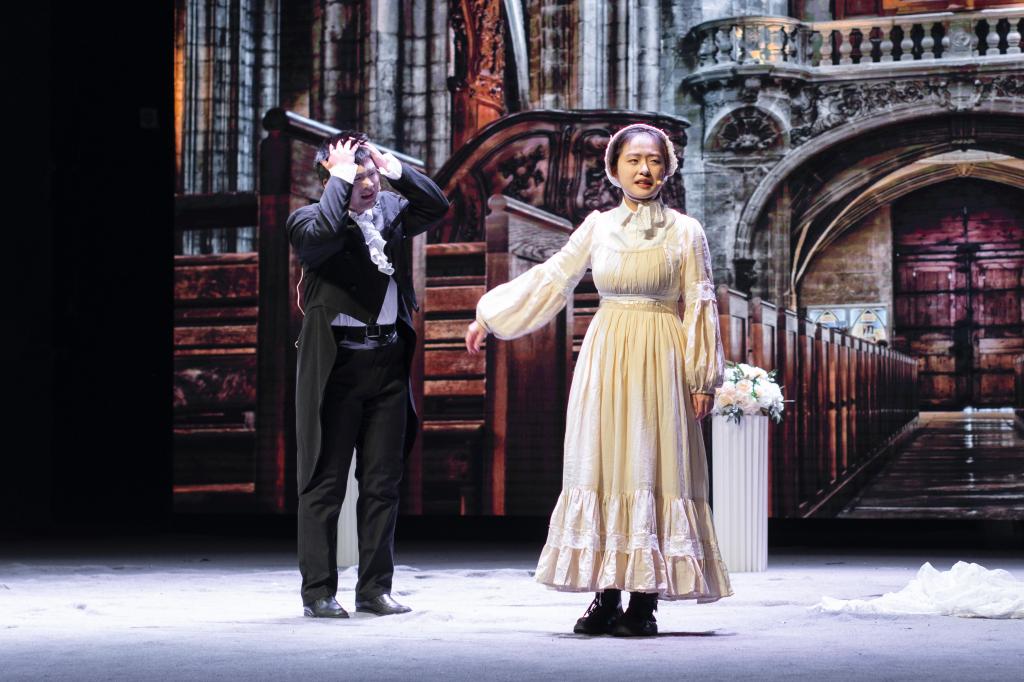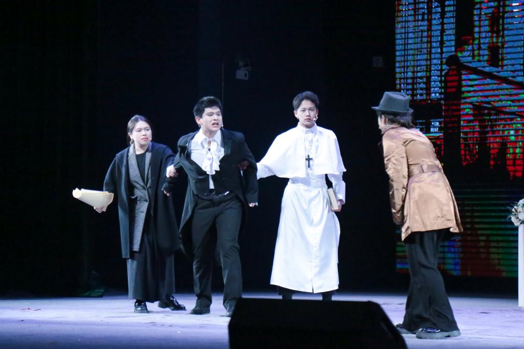 此次bevictor伟德队的参赛话剧《简·爱》改编自英国作家夏洛蒂·勃朗特的同名小说,节选了“求婚现场”“婚礼剧变”两个经典桥段。第一幕以晴空万里的庄园做背景,女主角简·爱即将离开,男主角罗切斯特强势挽留并深情告白,最后求婚成功收尾。第二幕则是在婚礼现场罗切斯特被人检举早已有了妻子,最后简·爱伤心离去落幕,与第一幕浪漫的氛围形成了强烈对比。男主角罗切斯特最后痛苦的,对父亲以牺牲他的幸福而换取财富的反抗的嘶吼。女主角简·爱所表现出的独立的灵魂,塑造了不屈于现状、敢于抗争的女性形象。