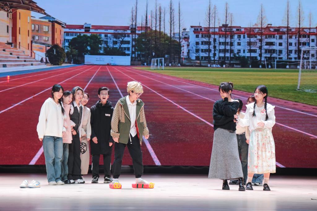 谈及在备赛中面临的困难这一问题时,道具组成员孙龙坦言:“我们面临的主要困难就是小帅的那双增高鞋,道具组以增高拖鞋为主要灵感不断讨论完善,自制了一双稳定性与美观性兼具并且贴合角色的增高鞋。”在正式演出时,这一双自制“增高拖鞋”也成为了观众对于本场演出的记忆点,使剧目呈现出的轻喜剧的效果更上一层楼。“剧本的精彩呈现离不开臻行剧社各部门的通力协作与积极配合,部门各司其职,在社长的带领与指导老师的帮助下有条不紊地备赛,最终向大家呈现了一个完美的舞台”,臻行剧社成员刘昱竹说到。