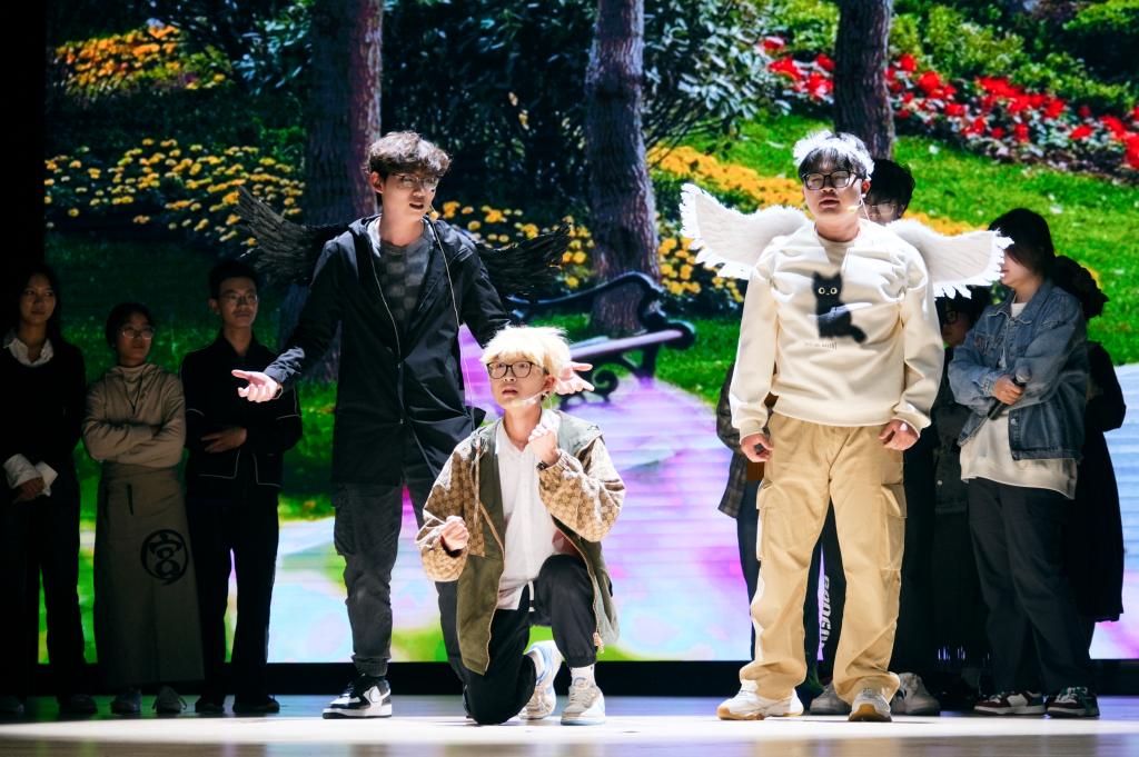 谈及备赛时的心情起伏,表演组成员刘昱竹分享道:“初赛的通过本身就是一种认可,这种认可让我感到激动。而复赛台下会有几百名观众,让我感到紧张。”给小帅戴上红鼻子、“杀马特”舞蹈和音效的加入、修改道具布局以呈现出更好的表现效果,剧社全体成员的共同努力使心理情景剧最终得以完整呈现。