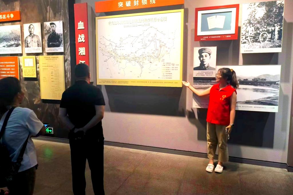 实践队成员们身着统一志愿服,手持导览图,在展厅内引导游客参观,同时提供有关遵义会议历史的解说服务。从会议召开的紧急背景,到毛泽东等老一辈革命家如何力挽狂澜、指引中国革命走向胜利,每个历史细节都在他们的讲述中变得鲜活起来,使得游客能够更加清晰地理解这一历史事件的重要性和影响。
