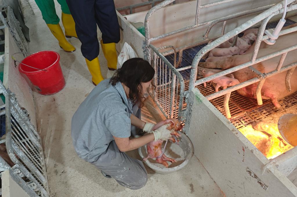 在参观过程中,王锟详细介绍了猪场的两个重要区域:分娩舍和配怀舍。分娩舍是仔猪出生的地方,配怀舍则是进行猪群配种和怀孕期管理的重要场所。实践团成员们在王锟的引领下,了解了这些区域的设计布局以及养殖过程的各个环节。