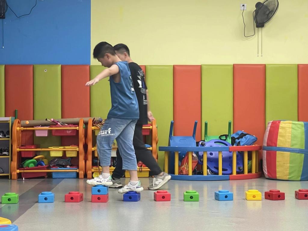 在与康复中心冯林晚老师的交流中,实践团队得知感统课程是针对不同孩子自身的的感统能力情况而设立的训练项目。感统训练是促使特殊儿童恢复正常的重要途径。