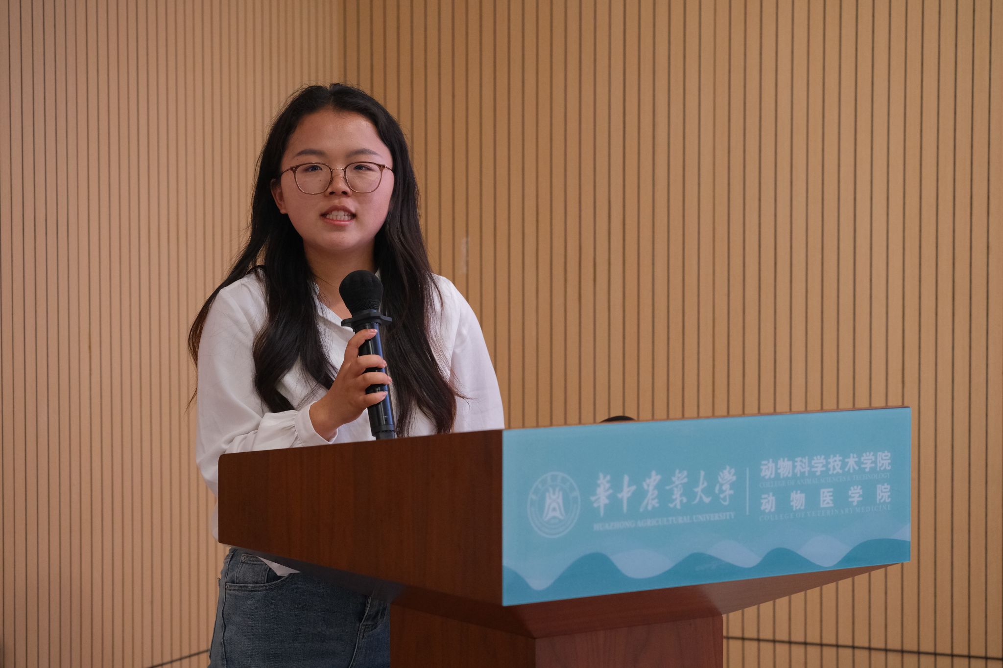 随后的PPT展示环节,十三个班级的班支代表通过幻灯片的放映表达了对下班组成员们深厚的感激之情。其中,动医2401班团支书龙诗淇根据班级同学对下班组的印象入题,讲述了下班组成员带领同学们逐步适应老员工活的温馨片段。演讲末尾,动医2401班班长吴限受邀上台朗诵对下班党员同志的感谢信,场内氛围一时达到高潮,全场掌声雷动。PPT展示环节结束后,各班班支代表本班同学将精心准备好的礼物传递给下班组成员并合影留念。