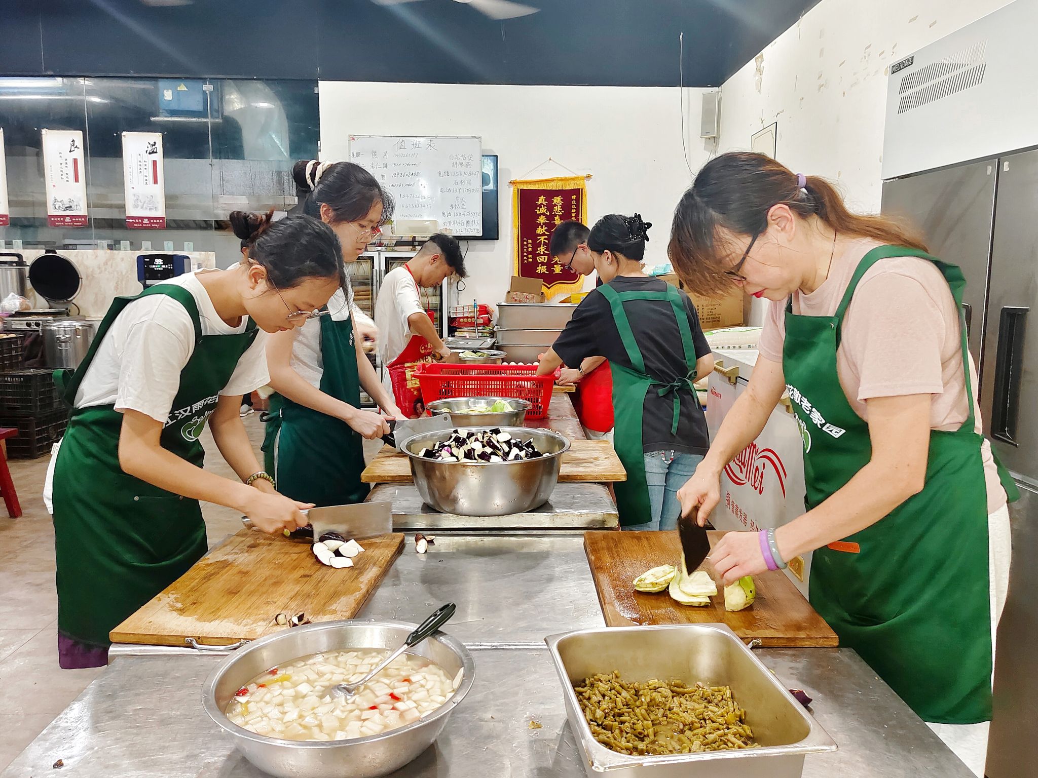 团队了解到,雨花斋每天接待超过300位老人,所有食材和物资均来自社会爱心人士的捐赠。工作人员每天详细记录菜品和物资使用情况,确保公益活动的透明与规范。谈及公益的困难,一位义工提到:“目前最大的挑战是义工数量不足,尤其是天气炎热时,人手会更加紧张。”