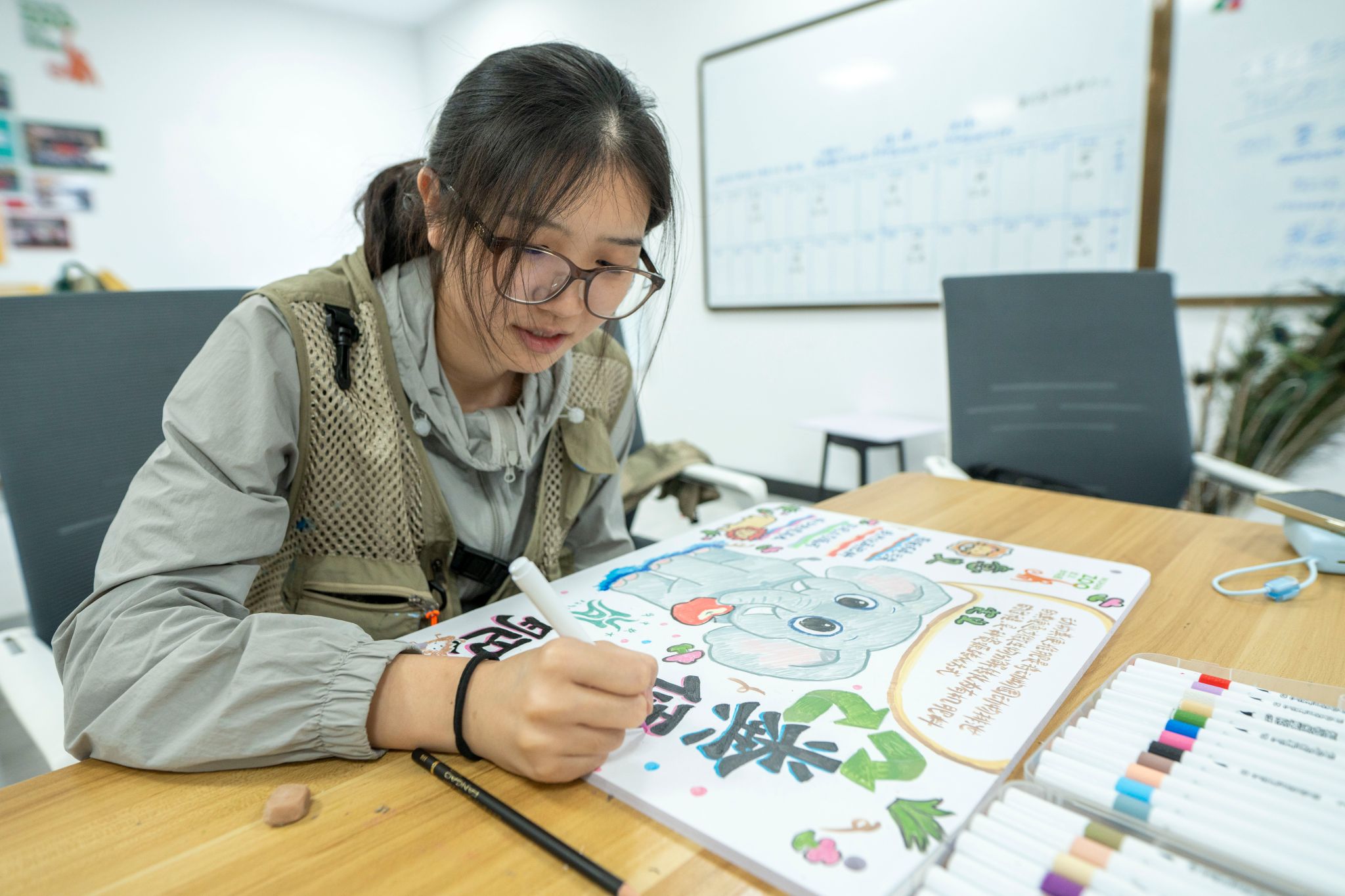 在设计科普牌的过程中,余旋认为,科普牌的展示可以让更多人了解到动物粪便堆肥的可行性和环保性,对重点的标注可以让人们直接认识粪便堆肥,推动更多人参与保护环境的进程。同时,该项目的负责人彭少波表示:“大象的粪便堆肥是我们动物园迈出的第一步,如果这次实验成功,我们将推广到其他动物。这次的科普牌和堆肥桶我们也将对外展示,让更多人知道大象粪便堆肥的好处。”