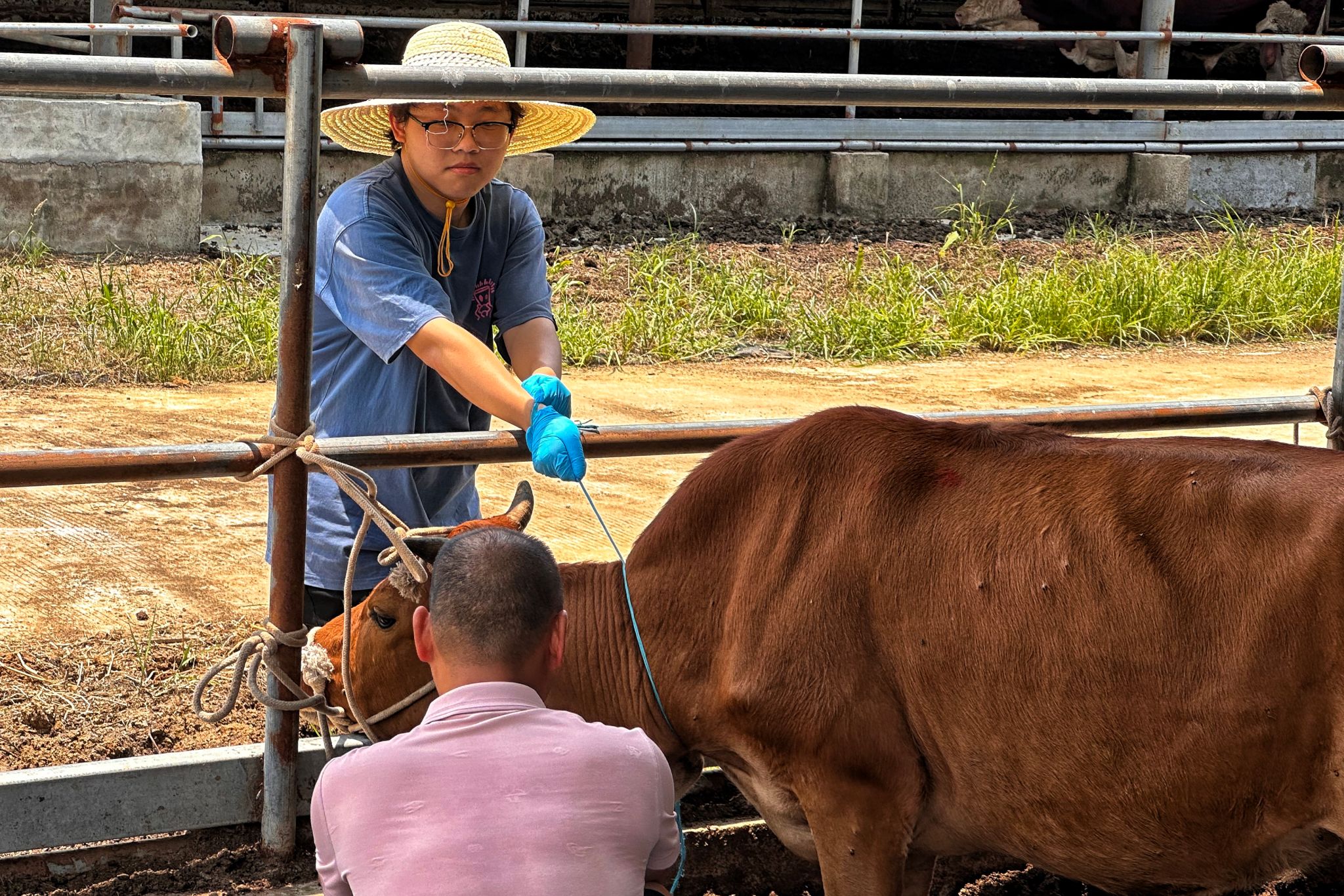 实践团队全程跟随学习,积极动手参与。在考察过程中,成员们认真向专家和一线工作者学习,跟随郭老师的脚步用心观察牧场实际生产,随着郭老师结合实物的生动讲解,同学们将实际情况与课本知识结合起来。随后,团队成员分工协作,高效配合牧场完成39头牛的采血、编号记录工作。实践团队成员们表示这不仅是一场生动而又专业的实地课堂,也是一次深入了解动科动医专业的机会。牧场工作人员李哲昊对此次实践表示高度认可:“同学们展现出了bevictor伟德的优良作风。郭老师提出的建议我们马上进行了安排和防治。”