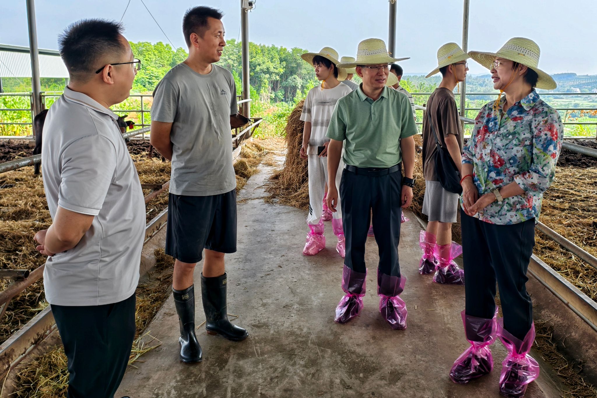 郭爱珍就牧场环境、过渡期牛的健康、饲料喂养等关键环节作出专业指导。针对持续的高温天气,郭爱珍提出牛棚通风扇的具体建议;在疾病防控方面,郭爱珍教授现场详细讲解了过渡期牛的防疫和预防问题,着重强调了牛的蜱虫传染,务必做好体外和体内的驱虫,同时指出,尽管部分牛传染病不在夏季高发,也要完善疫苗接种工作;针对饲料质量,郭教授亲自查验草料,并现场教学,向随行师生指出保留维生素B、呈现绿色的干草料为优质选择。牧场工作人员表示郭教授的指导意见非常重要,未来将按照郭教授的建议安排工作。