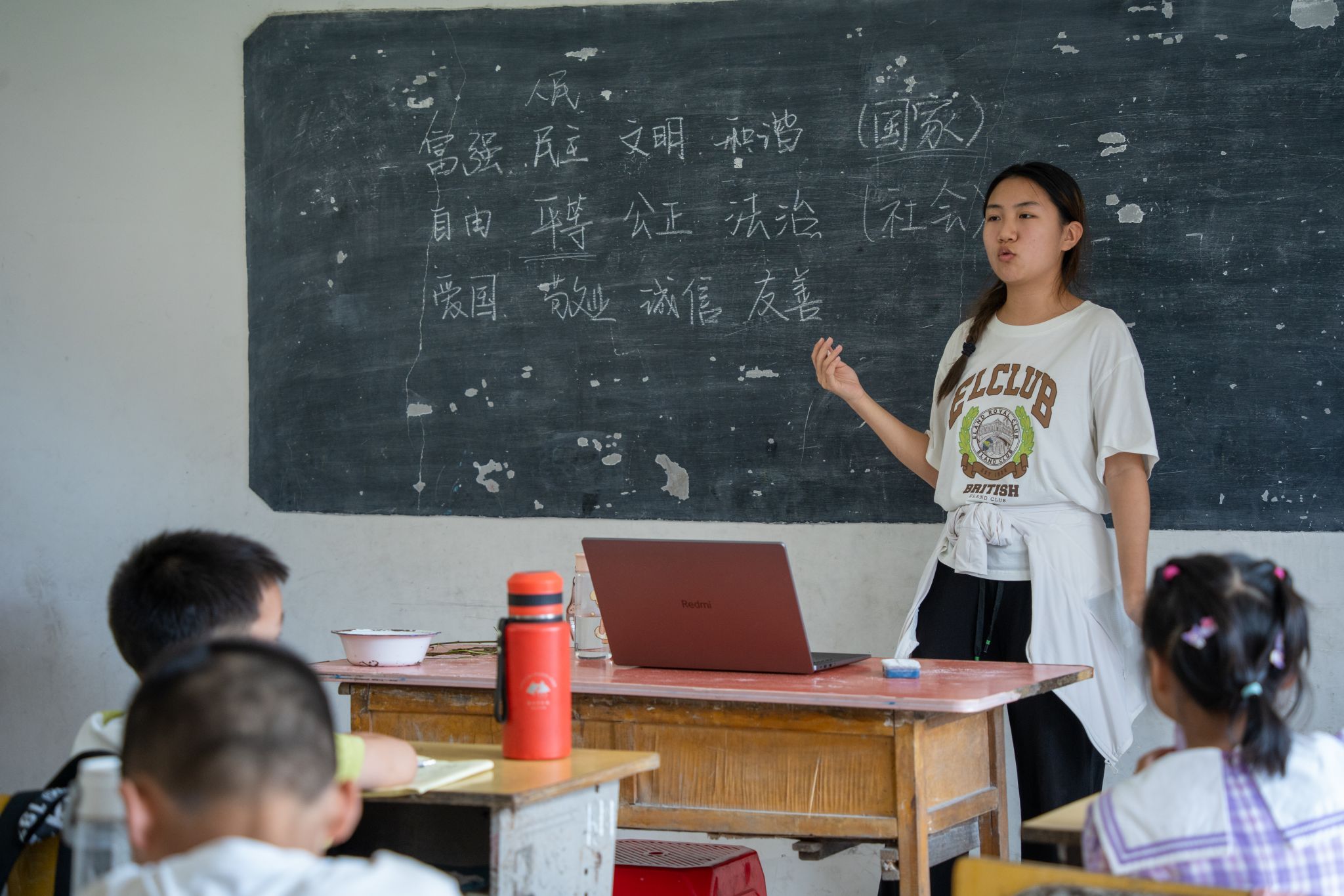 “月落乌啼霜满天,江枫渔火对愁眠。”炎炎夏日阻挡不了求知的脚步,在古诗词中体会秋日的凉爽,汲取智慧与美感,传承中华优秀传统文化之精髓;在朗朗书声中感悟支教的力量,种下爱心与希望,等枝桠,成繁花。