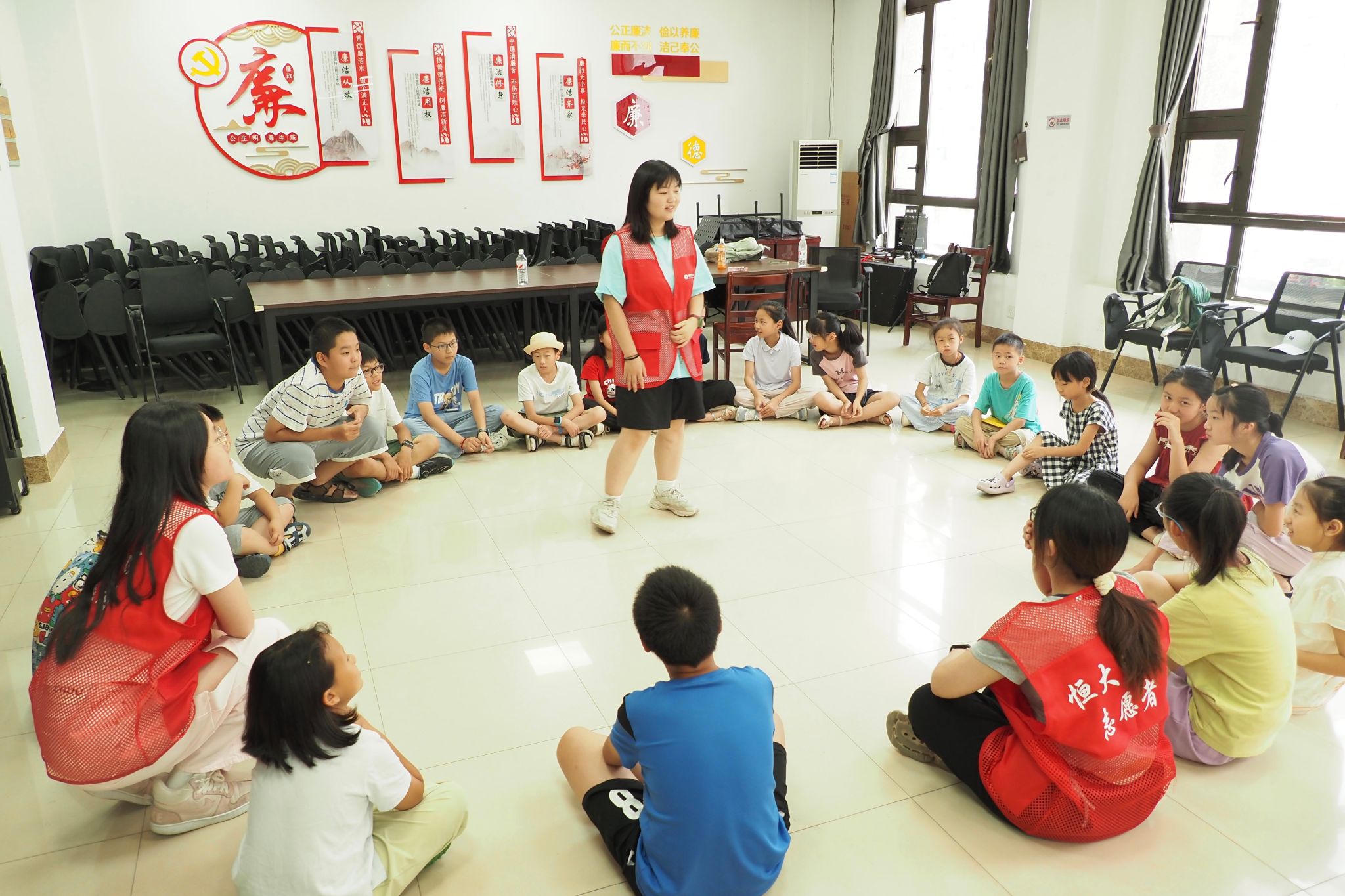游戏环节结束后,恒大社区工作人员端着切好的新鲜西瓜来到现场。实践团成员与孩子们围坐在一起分享,清甜的瓜瓤入口生津,为闷热的室内增添了几分清爽。社区工作人员冯女士感慨道:“孩子们在游戏中展现出的活力特别动人,能在炎炎夏日为他们送上这份清凉,看到一张张灿烂的笑脸,我们心里也暖暖的。”