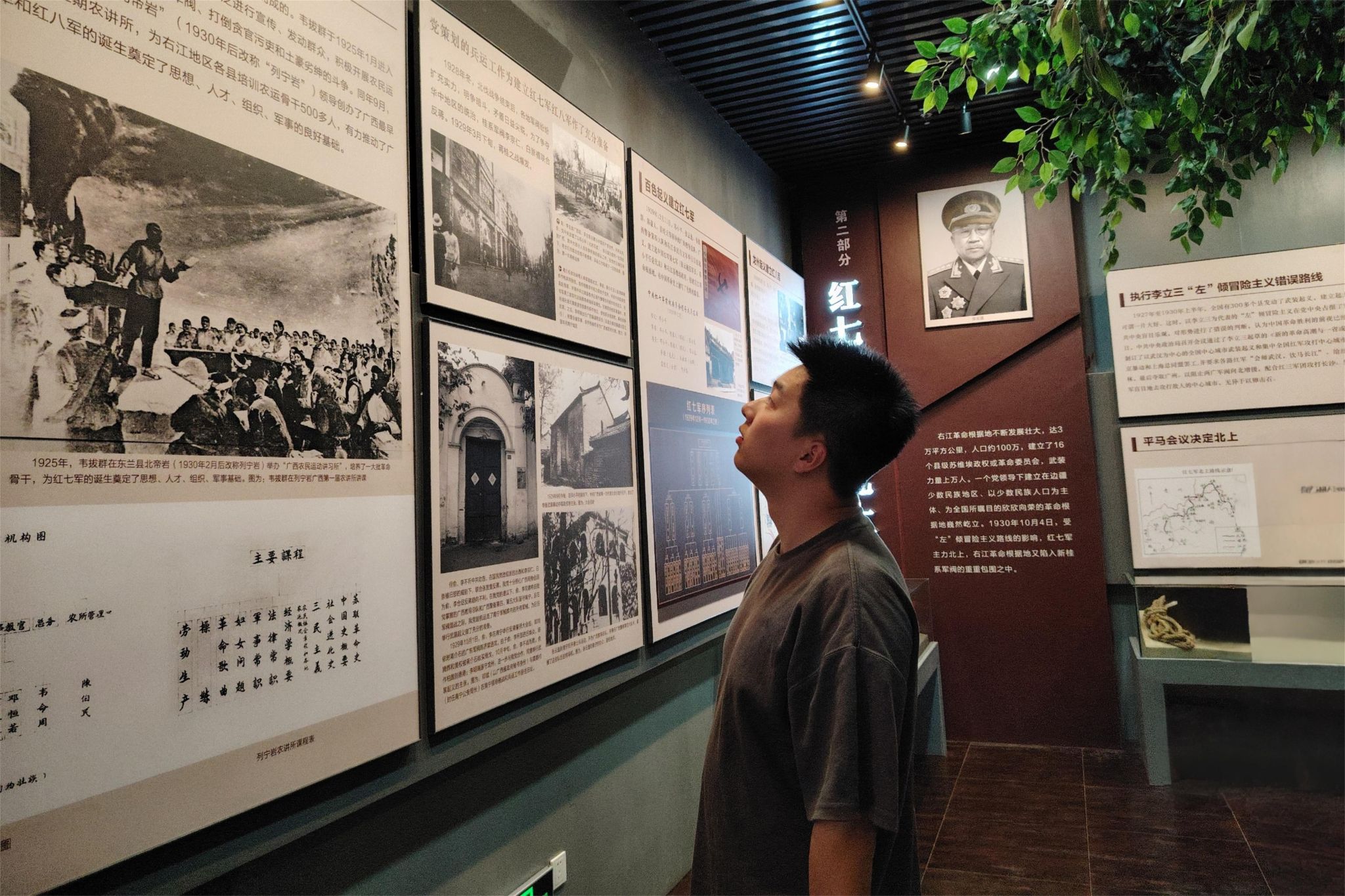 驻足于红七军战斗相关展陈前,成员认真聆听红七军在融安长安镇,与国民党反动军队英勇战斗的故事。从部队组建、战略决策,到浴血奋战的激烈交锋,先辈们拥有坚定的革命信念与无畏勇气;面对复杂局势,红七军将士们以热血赴使命,用生命护信仰,为革命事业披荆斩棘,这般精神深深震撼着每一位成员。
