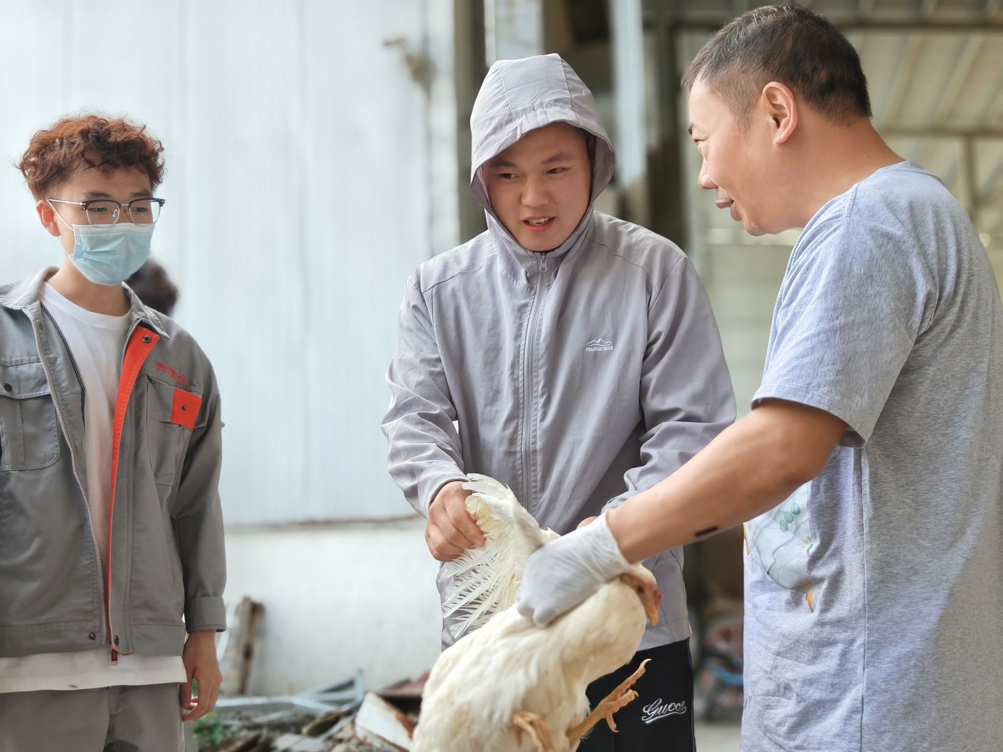 培训结束,实践团队转移至鸡舍旁空地开展实操。欧阳文军现场示范肝脏、脾脏、气囊等典型病变识别方法,并指导队员记录病理变化。“这只鸡肝脏表面布满白色结节,提示沙门氏菌感染;那例气囊浑浊增厚,需重点排查支原体。”他手持解剖器械,边操作边讲解。