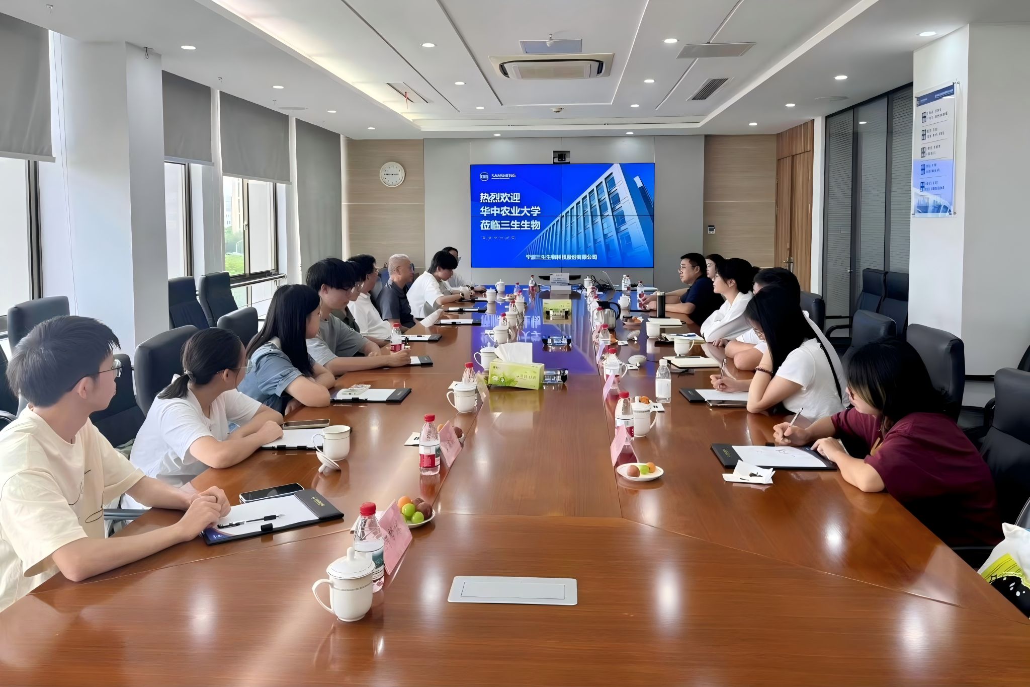 交流会尾声,师生们通过视频了解了三生实验室和生产线状况,雷明刚教授感慨道:“社会实践的意义,就是让同学们看到课本知识如何转化为产业价值”。三生人力行政中心总监张玉娇则表示,企业积极寻求与高校合作,建立产学研平台,希望更多青年人才投身动物健康事业。这场交流会不仅是技术与理念的碰撞,更是校企协同育人的生动实践。当高校的理论厚度遇上企业的实践深度,当员工的求知欲对上行业的人才追求,动保产业的创新活力正在这样的互动中蓬勃生长——这正是“三生万物”的另一种注解:共生共荣,方得始终。