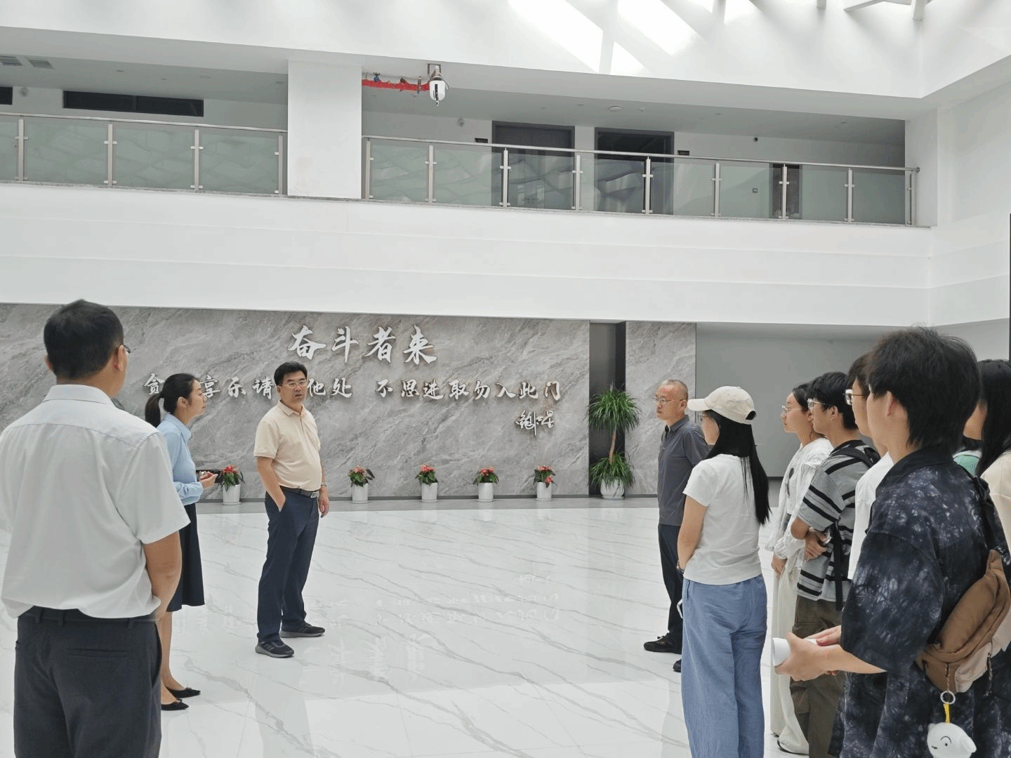 实践团在工作人员的带领下来到了双胞胎集团人才培养基地。集团董事长鲍洪星的亲笔题字的标语挂在大堂中格外醒目——“贪图享乐请往他处,不思进取勿入此门,奋斗者来”,字里行间不仅是对员工的谆谆教诲,更彰显了企业"以奋斗者为本,让机会向奋斗者倾斜"的人才理念。