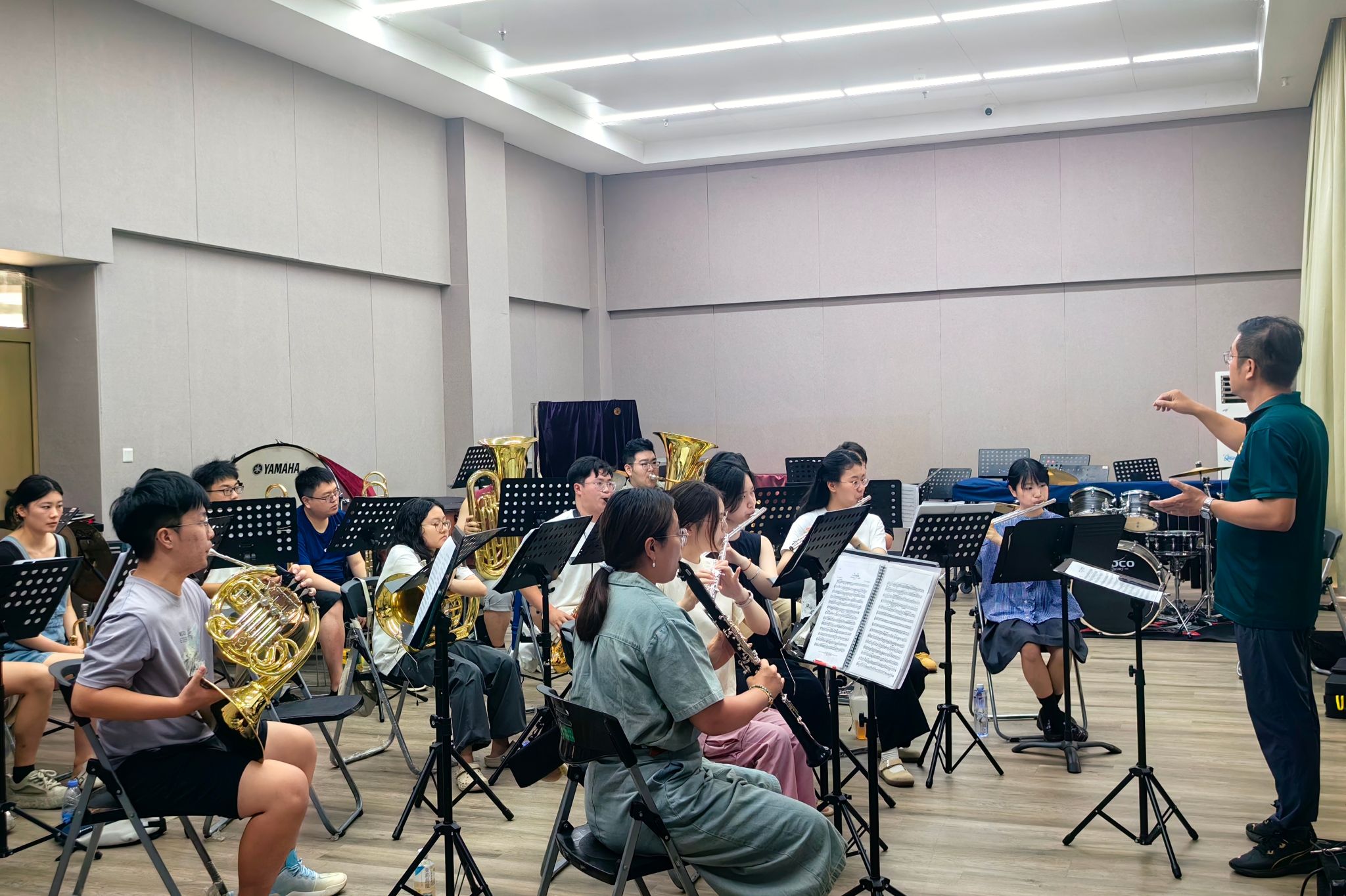 本次排练涵盖多届成员,时间跨度近十七年。员工中既有已成家立业、在各自岗位独当一面的资深团员,也有仍在求学阶段的年轻队员。音乐消弭了年龄与身份差异,让他们重拾员工时代对管乐的热忱与纯粹。2008级至2023级团员共同参与声部训练与这次合奏演练,展现出员工团高度的凝聚力与艺术活力。