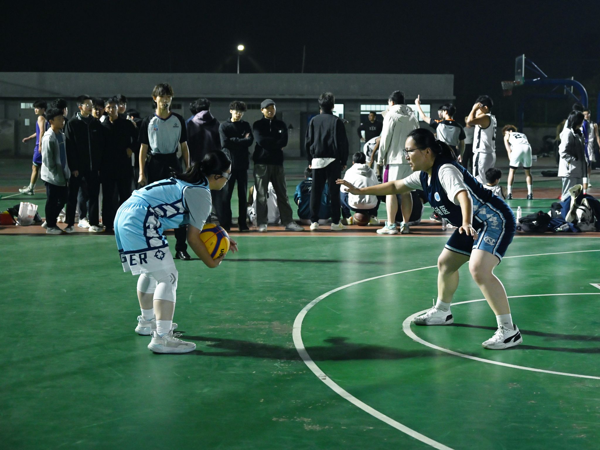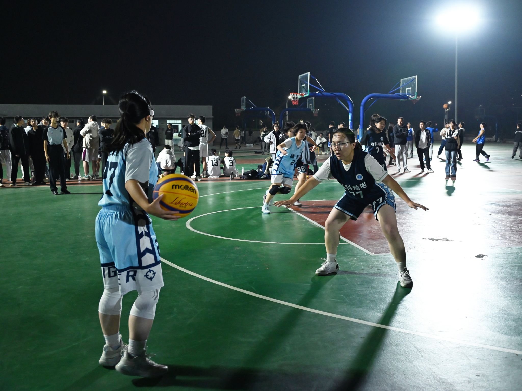 比赛伊始,动科动医女篮迅速进入状态。77号阿丽娜尔积极防守完成抢断,与36号汪涵默契传切配合,拿下全场首分,点燃球队士气。紧接着,全队防守严密,成功限制住对方进攻,造成植科公司进攻超时违例,进一步巩固领先优势。