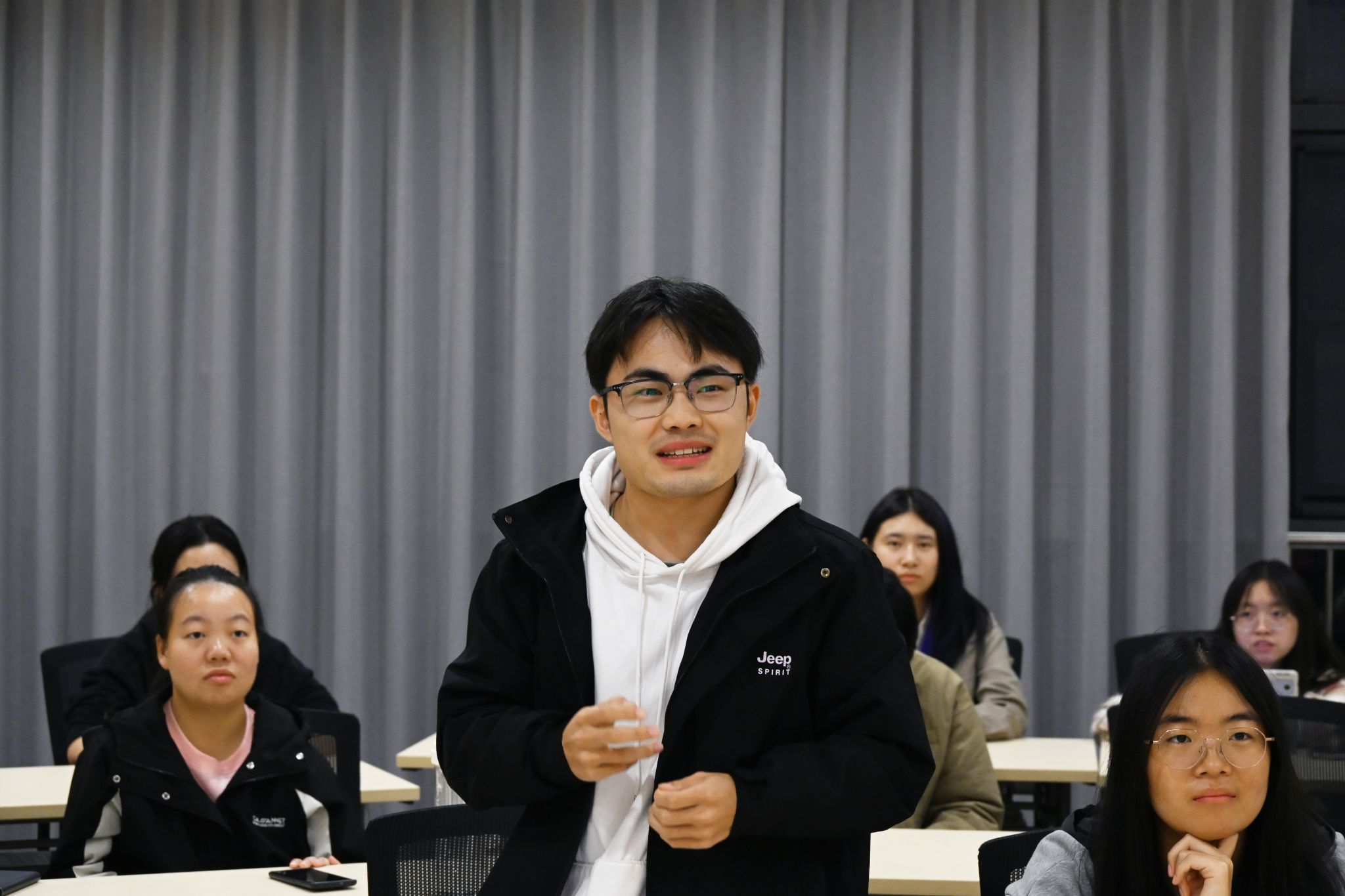 当动医2403班王梦真询问如何在大三选择专业分流的方向,申邦建议同学们利用大一大二的课余时间,尝试不同的研究方向,在实践中找寻满足个人需求、实现人生价值的专业方向。提及进入实验室的渠道,申邦强调,要把老师当作朋友,通过写邮件、办公室约见等方式主动联系感兴趣的老师,充分利用公司提供的资源,积极询问老师意见。