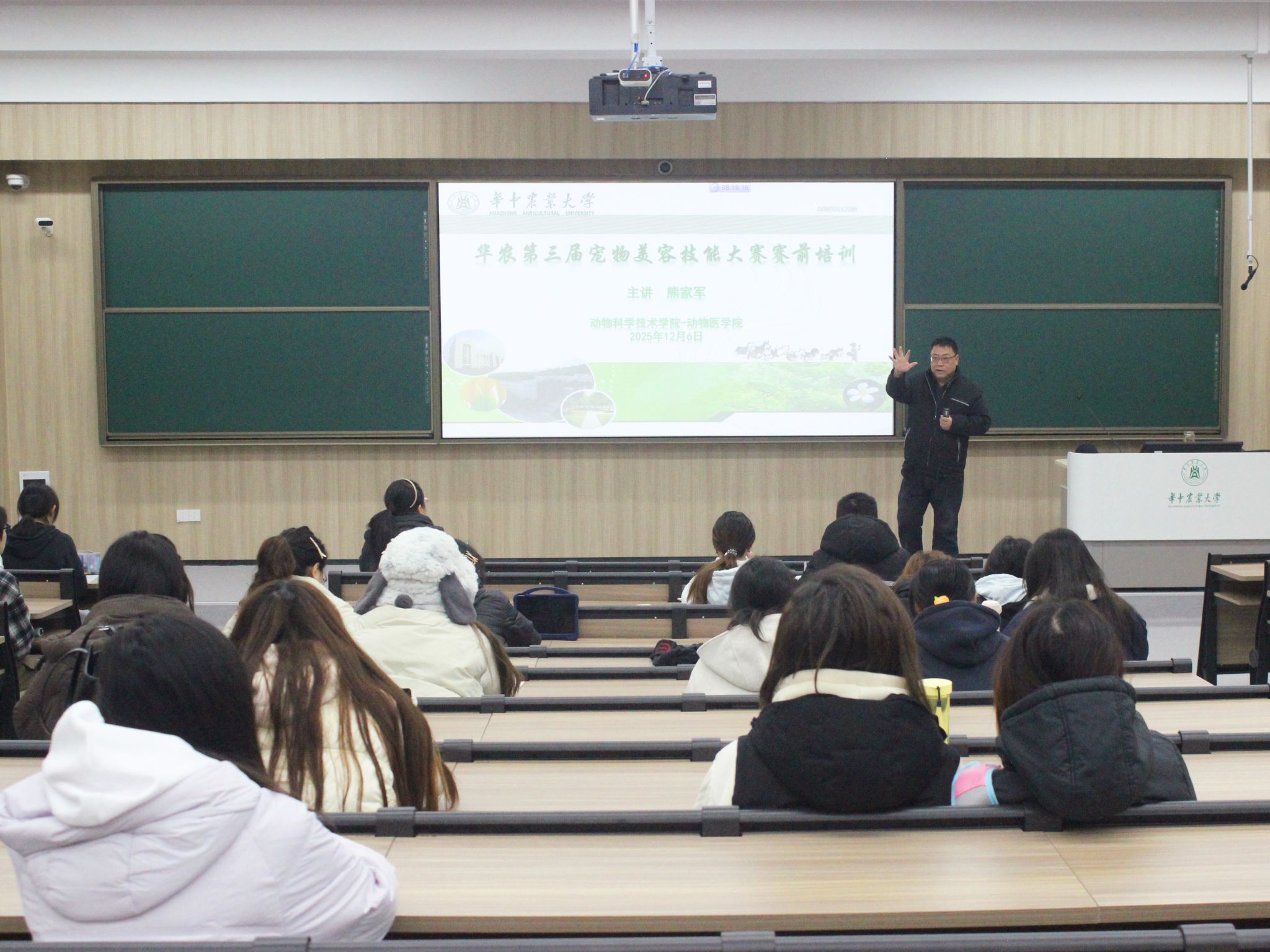 (通讯员:任清竹 摄影:任清竹)12月6日上午,bevictor伟德第二届“宠物美容技能大赛”理论培训在三教C105教室举行。bevictor伟德bevictor伟德熊家军副教授为参赛选手进行赛前指导。