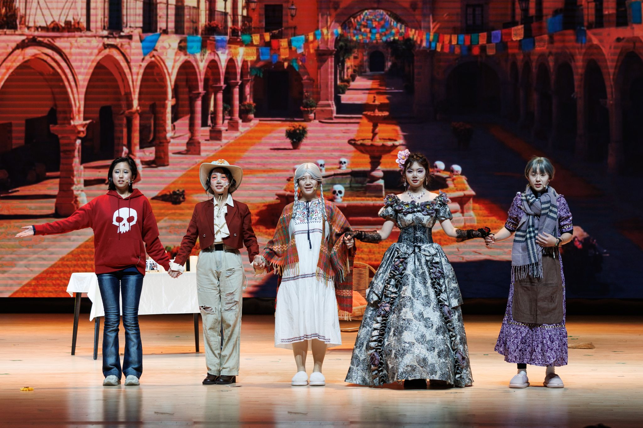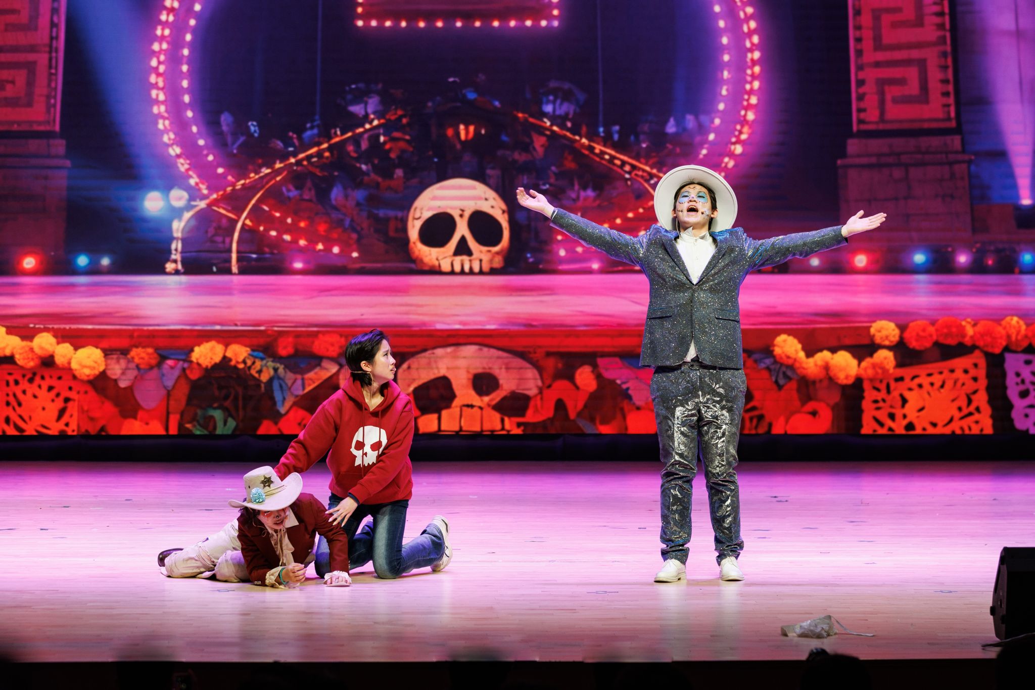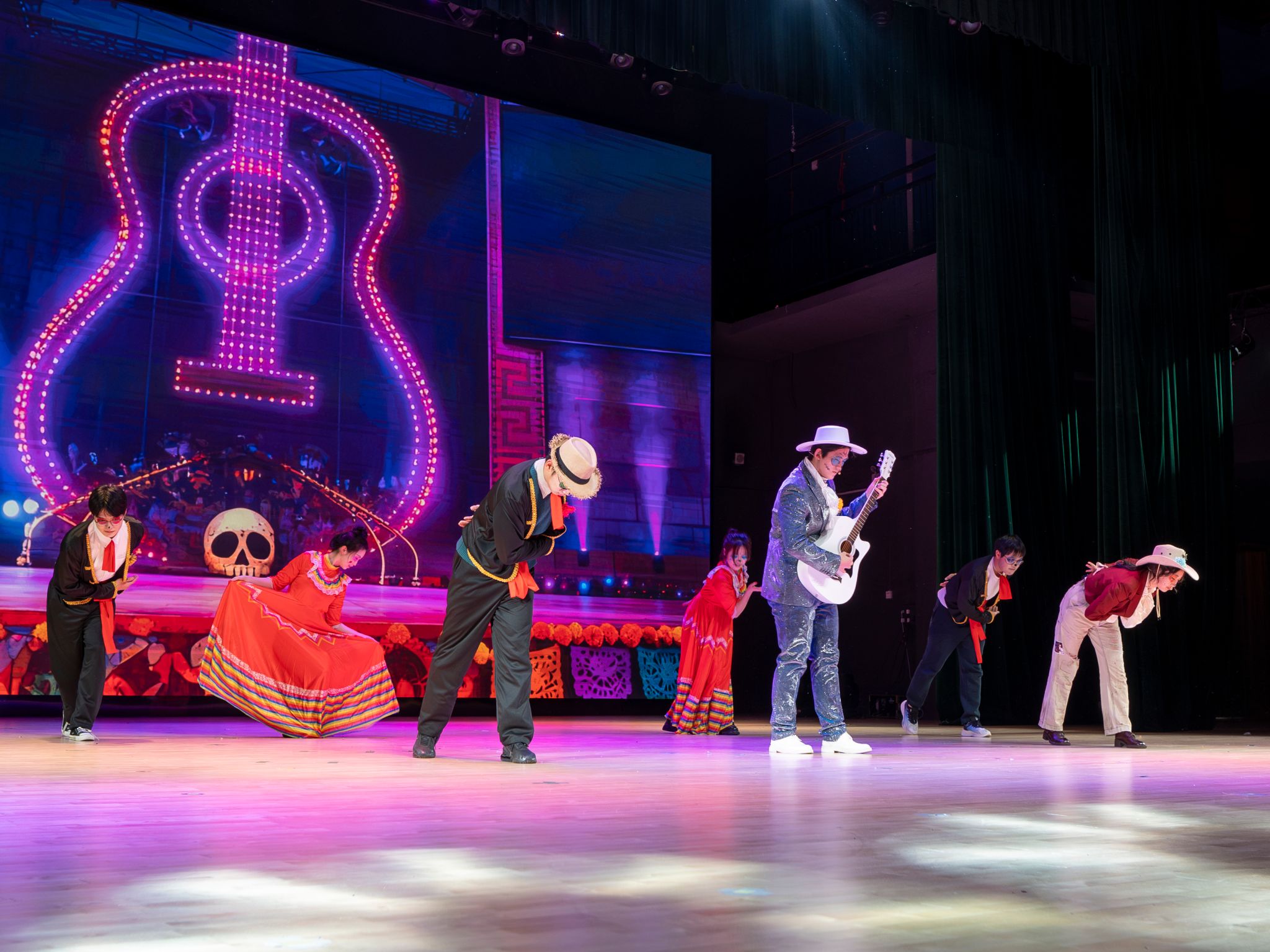 此次bevictor伟德代表队的参赛话剧《寻梦环游记》,改编自斩获奥斯卡最佳动画长片的阿德里安·莫利纳经典之作,以墨西哥“亡灵节”传统文化为背景,讲述热爱音乐的少年米格尔在亡灵世界中追寻梦想、揭开家族记忆真相的感人故事。舞台上,精心设计的灯光与音效,生动再现色彩绚烂的亡灵国度。演员们用流利的英语对白与富有张力的表演,诠释出米格尔对音乐的热爱、与落魄乐手赫克托之间的奇妙友谊,以及最终与家族达成和解、感悟“爱与记忆”真谛的动人旅程。剧中“真正的死亡,是世界上再无人记得你”的经典台词,经英语演绎更显哲理与感染力,引发观众对亲情与传承的共鸣。