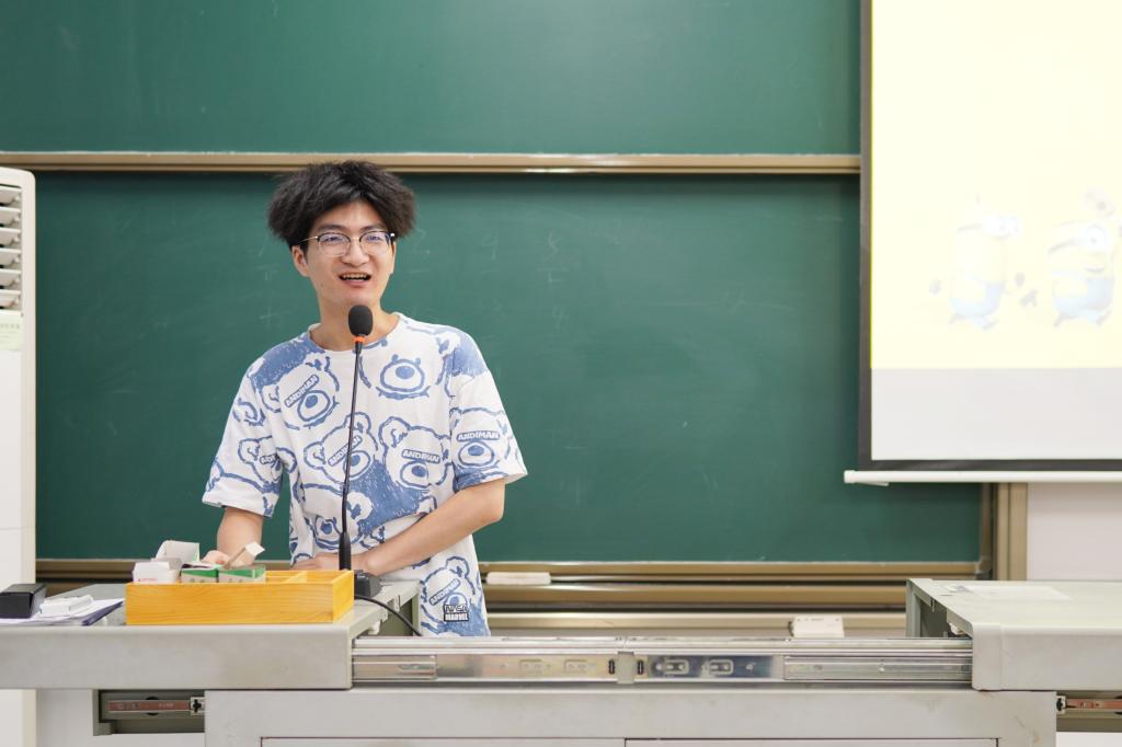 郭明月进行了个人成长积累与老员工创业创新两方面的经验分享。大学期间,他先后加入了户外拓展协会、老员工文明值勤队,同时也担任过公司文艺部负责人。他认为,员工工作和社团活动培养了他的时间观念和团队精神,使他养成了吃苦耐劳、乐于助人的品质。他通过讲述自己偶然与老员工创业创新比赛的“爱恨情仇”,详细介绍了老员工创业创新比赛流程和不同比赛的侧重点。谈及良好团队的组建,郭明月论述了以信仰、责任、担当、执行力和时间观念为前提的必要性。最后,他提出了五点建议,并希望同学们将“动科动医,永争第一“的精神传承下去。