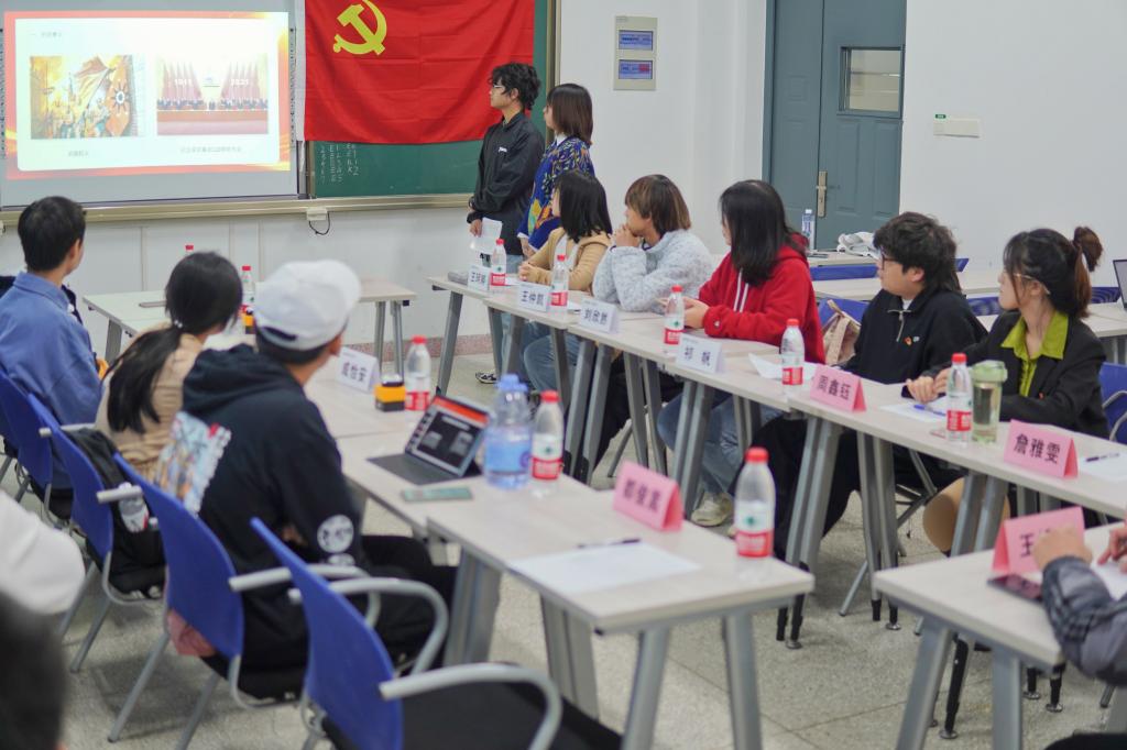 (通讯员:赵慧 摄影:熊丽雯)为强化党员的身份和责任意识,加强党员的监督和管理,进一步提高党性修养和个人素质,10月24日晚,动科动医公司党建督察部于四教C401开展以“百年党史,红色传承”为主题的预备党员中期答辩。本次中期答辩由党建督察部志愿者余舟彤、吴素琴主持;辅导员王运涛,正式党员詹雅雯、周鑫钰、都俊嵩担任评委出席本次答辩。