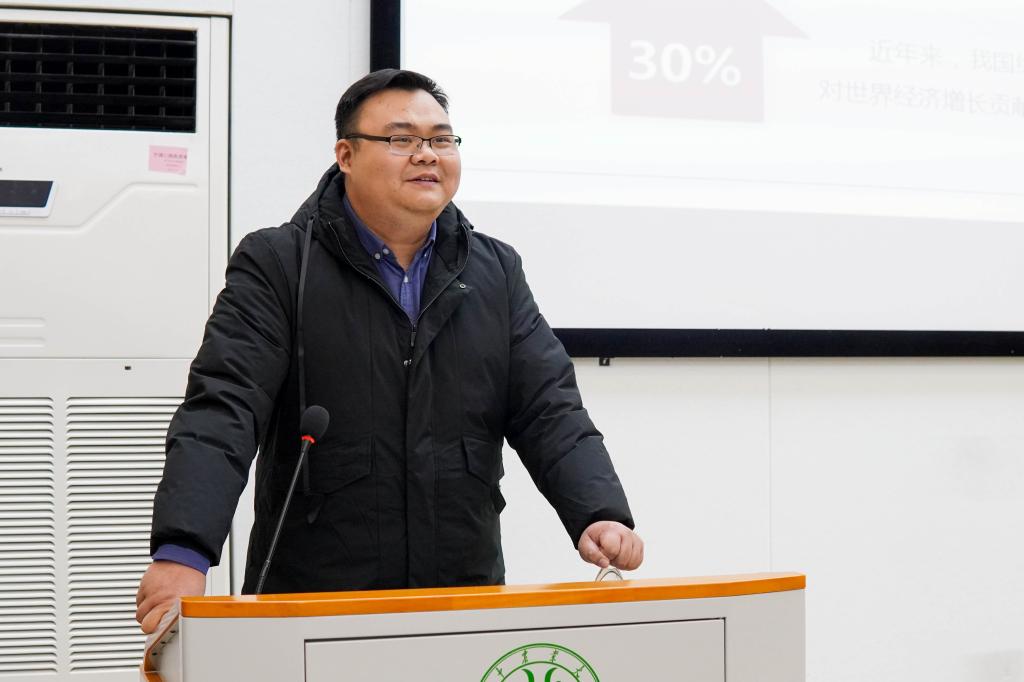 团课的第一个部分是“立足时代之基,回答时代之问的科学理论”。谭力铭总结并阐述了“新时代”、“新阶段”、“新变局”、“新考验”这四个“新”,指出中国正处于百年未有之大变局的时代,面临着许多新机遇与新挑战。他着眼于当今时代背景,从世界局势谈到中华民族的发展历程,阐明了习近平新时代中国特色社会主义思想创立的重要性与必要性。