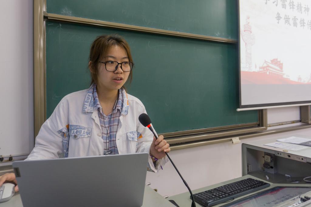 “这个词是四个字吗?”“这个词和团生会主题有关系吗?”“这个词是‘雷锋精神’吗?”“回答正确。”动医2005团支部通过“旁敲侧击”这一暖场小游戏调动起班级同学的参与热情,也勾起了支部成员对于雷锋的记忆。何奕杨表示,谈到雷锋精神,最先想到的就是儿歌里的那句“学习雷锋好榜样,忠于革命忠于党”。郭家美则联想到“雷锋出差一千里,好事做了一火车”。