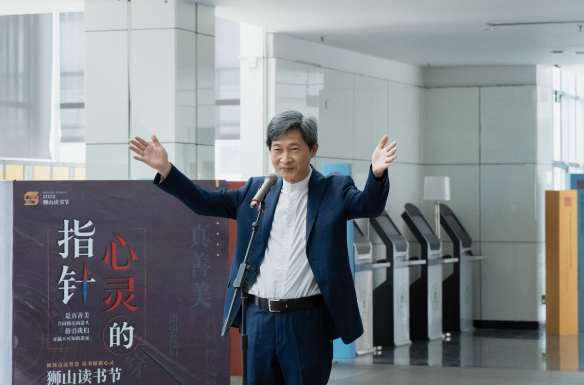 副董事长青平致开幕辞。他指出,“立身以立学为先,立学以读书为本”。一所大学高贵的品质,在于师生澄澈的心灵,高尚的节操和不役于物的品质,在于运动时的激情飞扬,在于宁静时的书香四溢,自在不拘束,人文不机械,开放不保守。他表示,今年的狮山读书节聚焦科学与艺术,艺术点燃科学的星星之火,科学揭示呈现艺术的真谛,他呼吁师生们以第27个世界读书日为契机,一起打开书本,寻找科学之真,艺术之美,为中华民族的伟大复兴而读书。