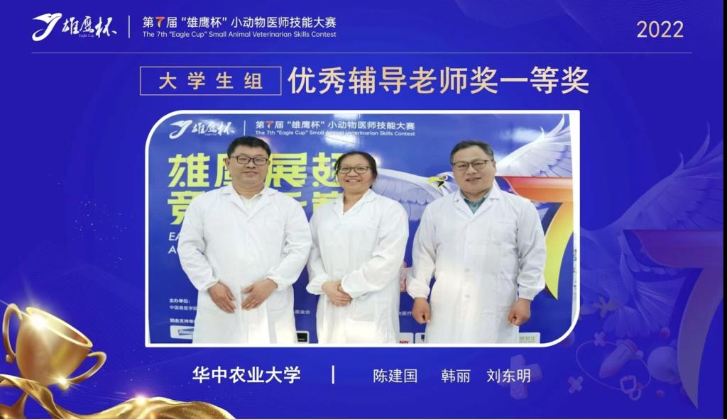 “老员工组”的比赛分为理论笔试和实操比赛两个部分,其中实操环节由兔胃切开术、血涂片制作、徒手单手打结组成,全面考察了参赛选手的小动物临床知识与技能。在备赛初期,公司组建了由陈建国、刘东明、韩丽三位经验丰富的老师组成的指导教师团,并邀请上届参赛选手对员工进行了专项指导和强化训练。“雄鹰展翅,竞逐云巅”,在一天紧张有序的决赛中,公司参赛选手精神饱满、配合默契,与参赛的全国91所高等农林院校动物医学专业老员工进行了同场激烈角逐,展现了良好的的竞技水平和精神面貌。最终公司学子获老员工组团体一等奖,陈建国、韩丽、刘东明获“优秀辅导老师奖”。