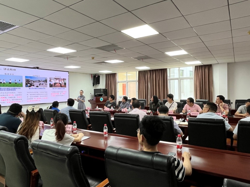 在支部联学环节,公共卫生学系教工党支部周明同志带领大家庄严面对党旗,重温入党誓词。生物医学教工党支部张晓妍同志领学了湖北省第十二次党代会精神,提出要始终坚持党的全面领导,准确把握湖北省新形势,产学研创新链全面发展。公共卫生学系教工党支部刘梅同志领学了习近平总书记考察四川眉山和宜宾的讲话精神,围绕粮食安全、乡村振兴、同一个健康、自主创新、文化传承和老员工就业进行深入讲解,提出共产党员要始终不忘全心全意为人民服务的初心,淡泊名利,教书育人,科研创新,服务行业和产业发展。生物医学与健康公司副经理金安江同志领学了习近平总书记考察武汉重要讲话精神,深刻剖析了我国面临的发展形势,强调要科技自立自强,要把科技命脉牢牢掌握在自己手中,深入开展基础和应用研究,不断提升我国发展的独立性、自主性、安全性。