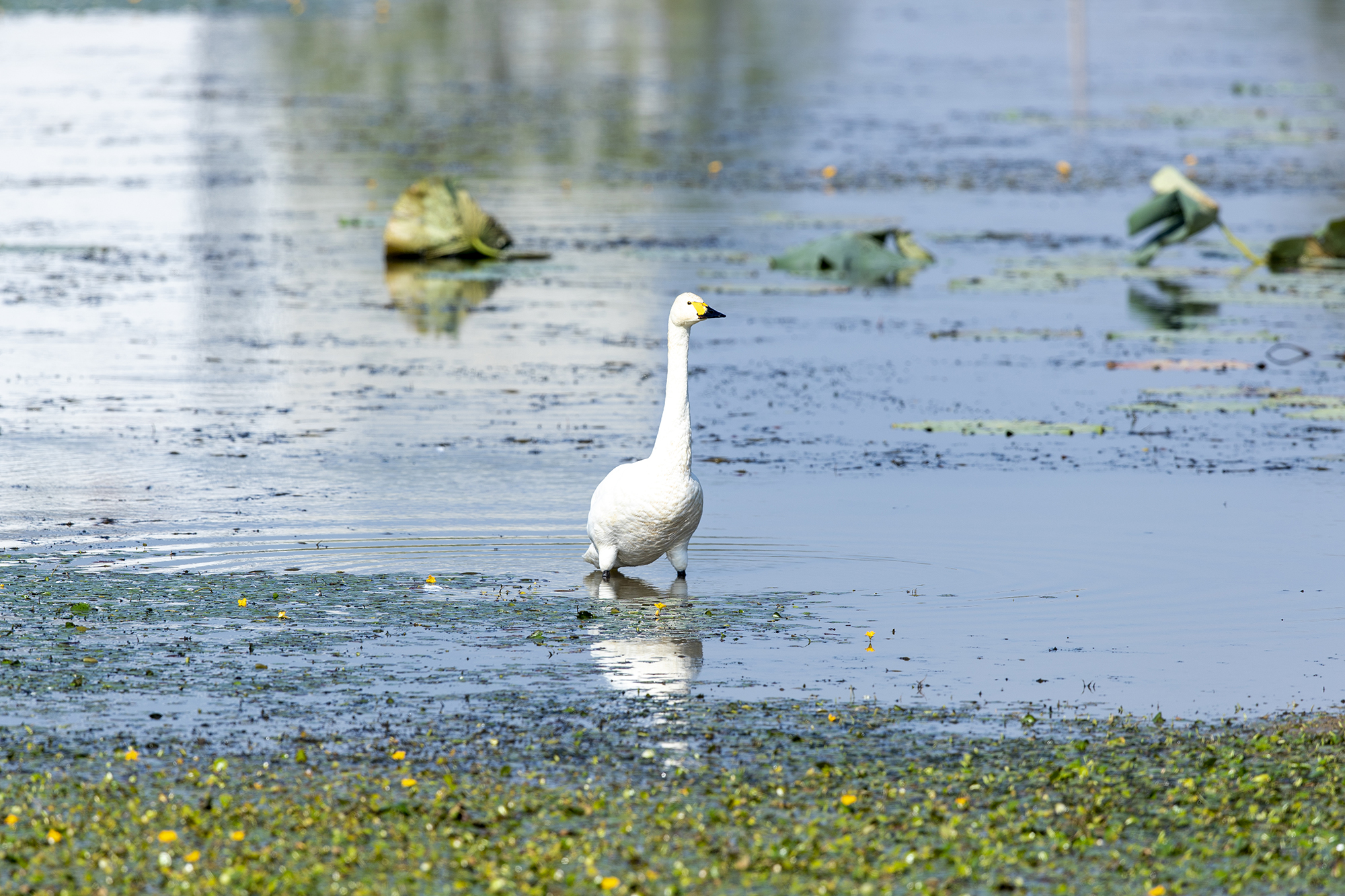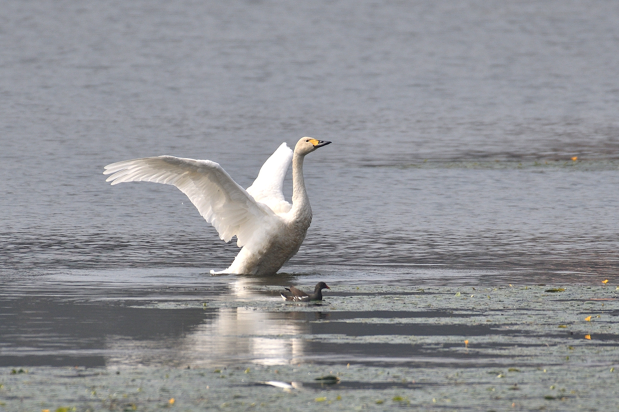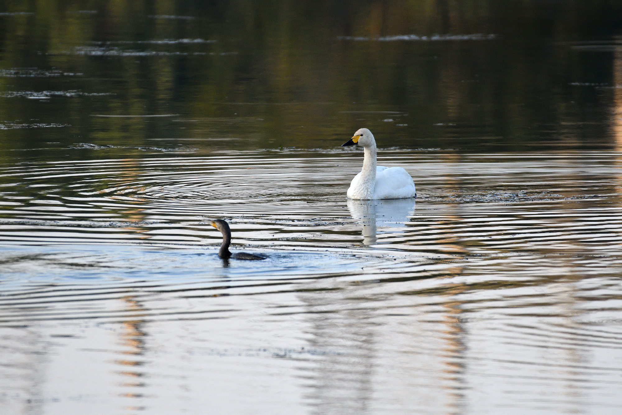 小天鹅与普通鸬鹚同游(通讯员 宗琪 摄)