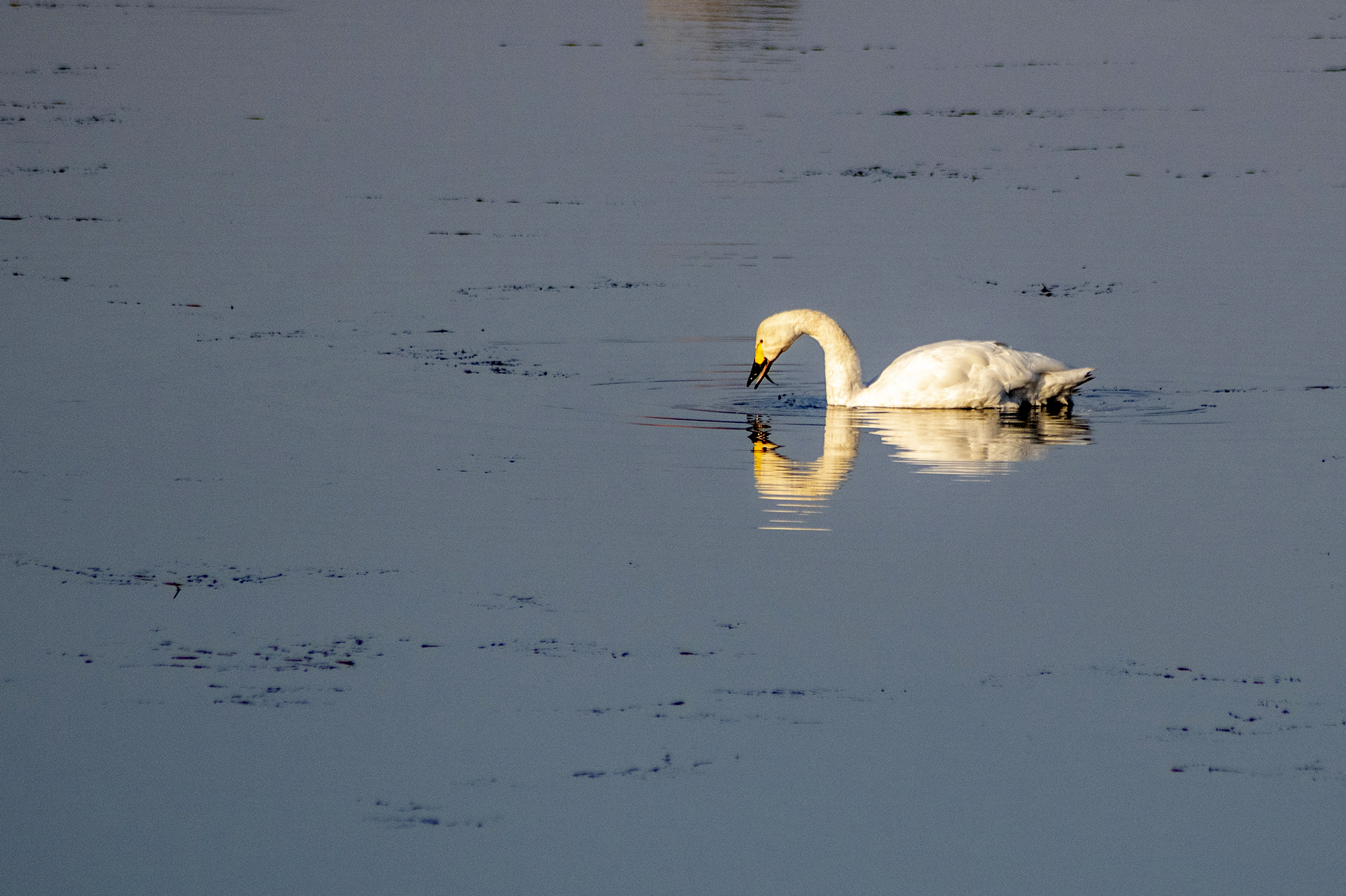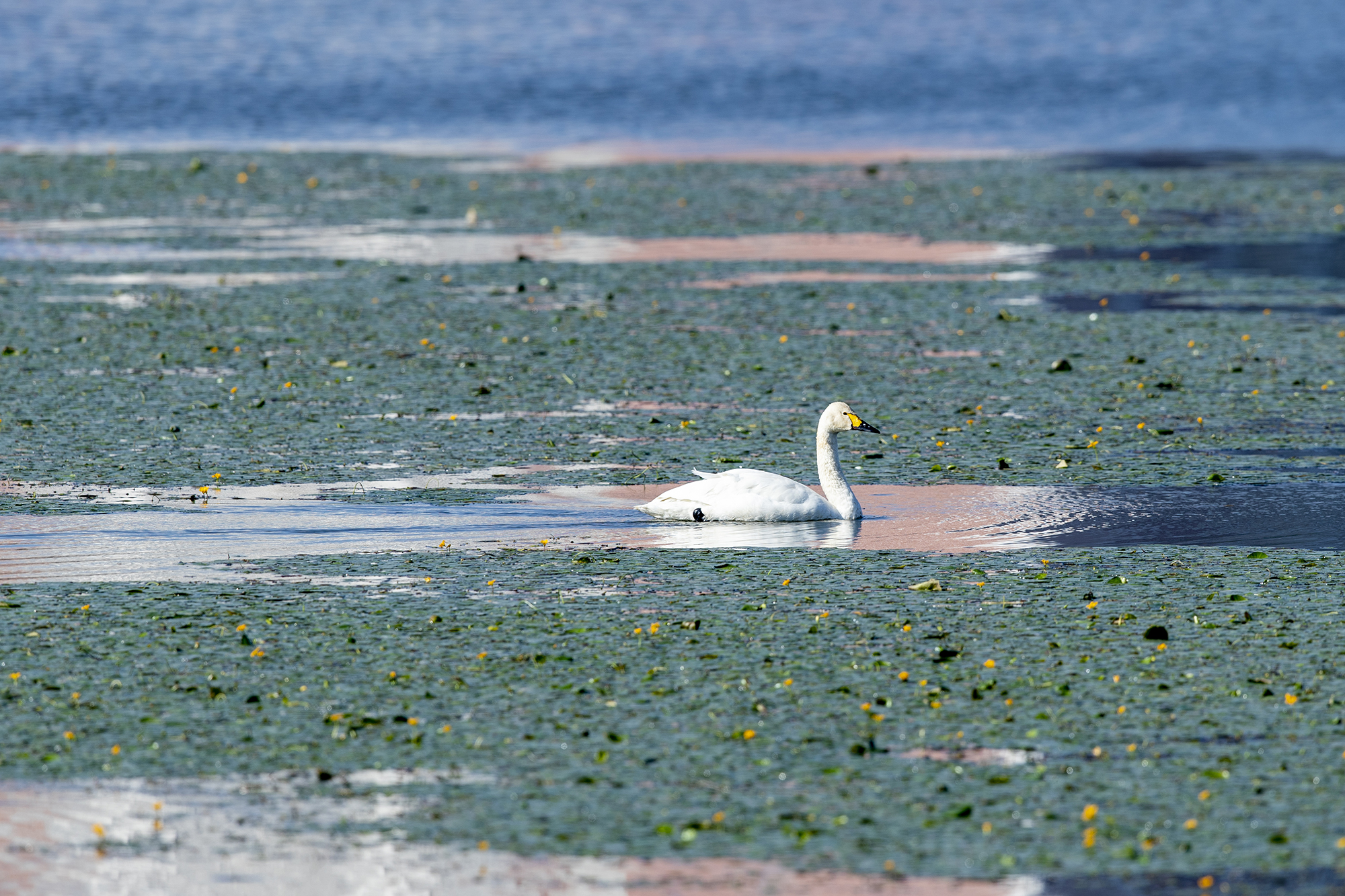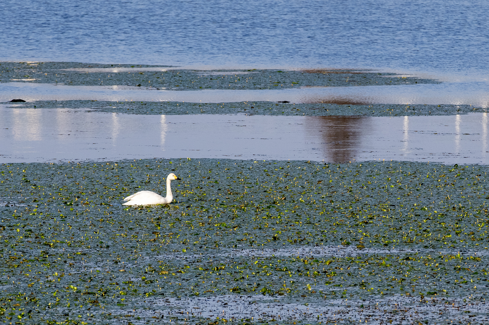 小天鹅与普通鸬鹚同游(通讯员 宗琪 摄)