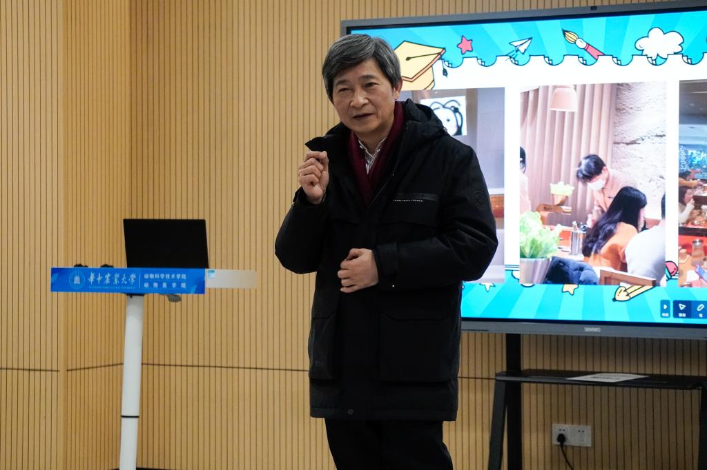 在四综D201活动室,高翅表示,“同学们提到大学,那么什么叫大学呢。我理解的大学是‘立大志’‘成大事’。学是学问、问学。大学不做学问,‘学’就没有意义了。”他说,“大学是常新的,大公司园因青年员工而富有朝气,老师因员工而青春焕发,希望同学们在大学里‘明大德’‘立大志’‘成大业’,践行三全育人、五育融通、师生融乐、全面发展育人理念,行而不辍、创新不止,用奋斗的青春去找寻求真、崇善、尚美的意义世界。”借助校歌中“宏农学、扬国光、日新永无疆”的歌词,他强调,“‘日新’指的是每天都要有进步,每天都要有创新,唯有如此,我们才能实现农业的进步乃至人类科技的进步。”他引用《大学》中“大学之道,在亲民,在止于至善”为同学们指明前进的方向。