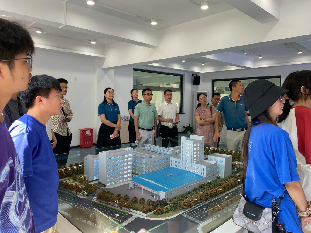 师生一行还参观了公司酶制剂生产基地,在技术专家的讲解下,了解生产基地规划布局、发酵工艺流程和核心酶制剂产品等。